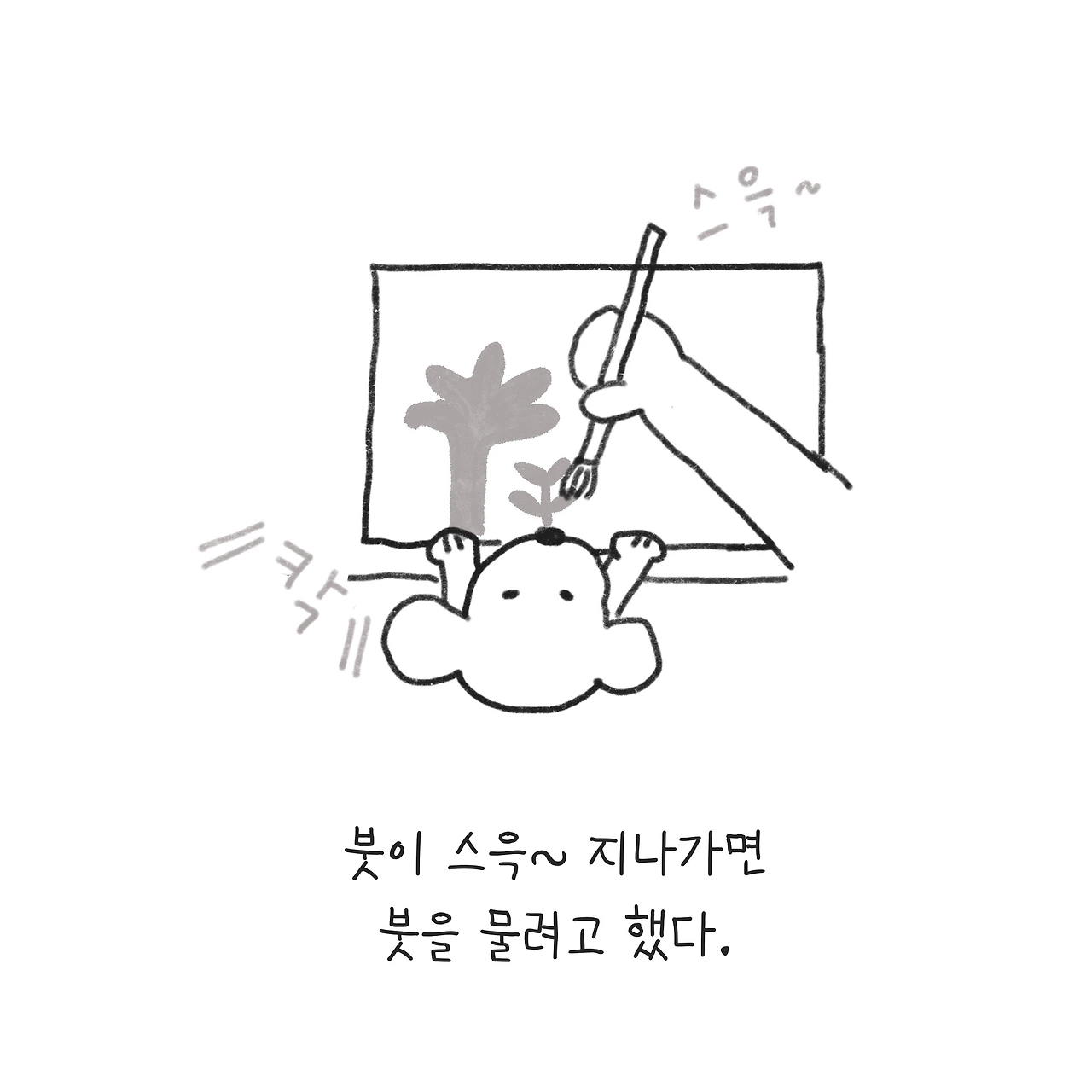 그 모습이 너무 웃겨서 가끔은 그림을 그리지 않으면서도 쓱쓱 붓을 쓰는 척을 하기도 했다.