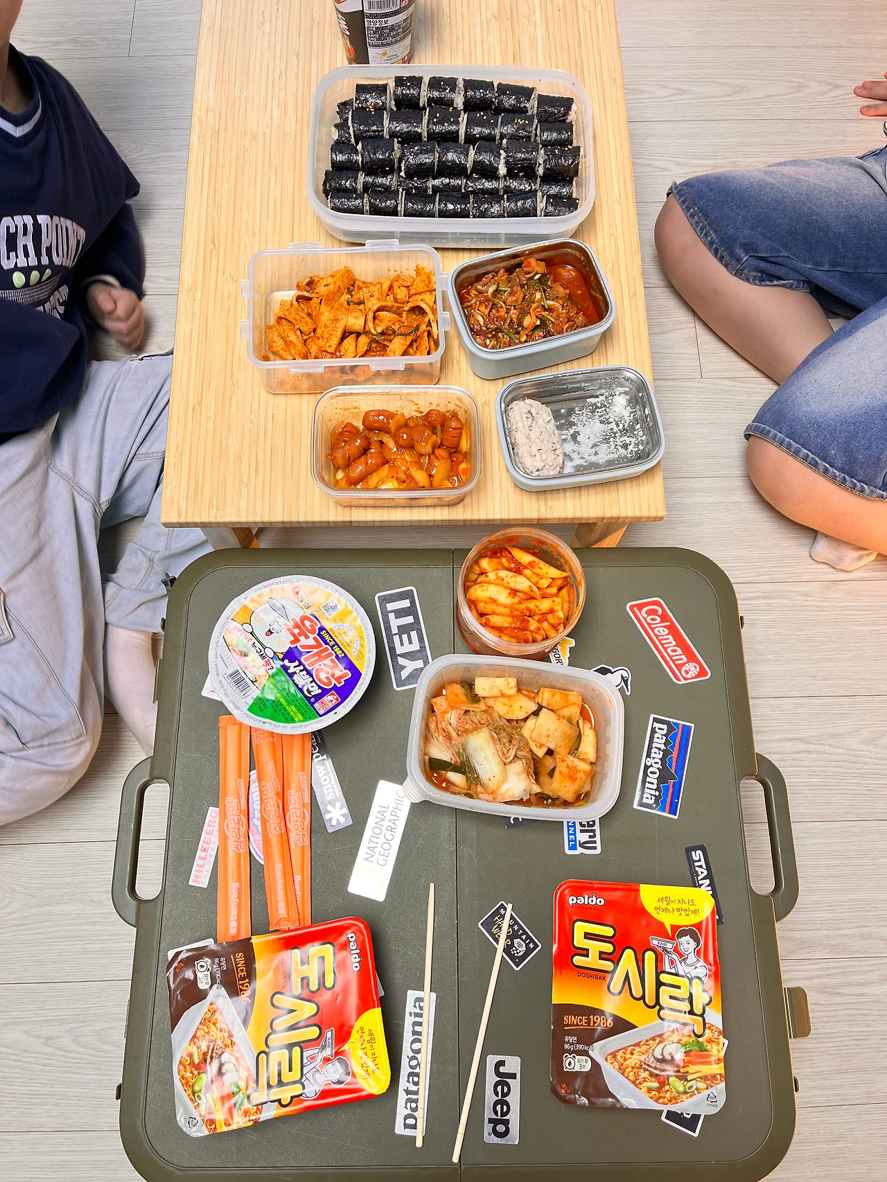 남편이 충무김밥을 만들어 와서 컵라면과 함께 먹었다.
