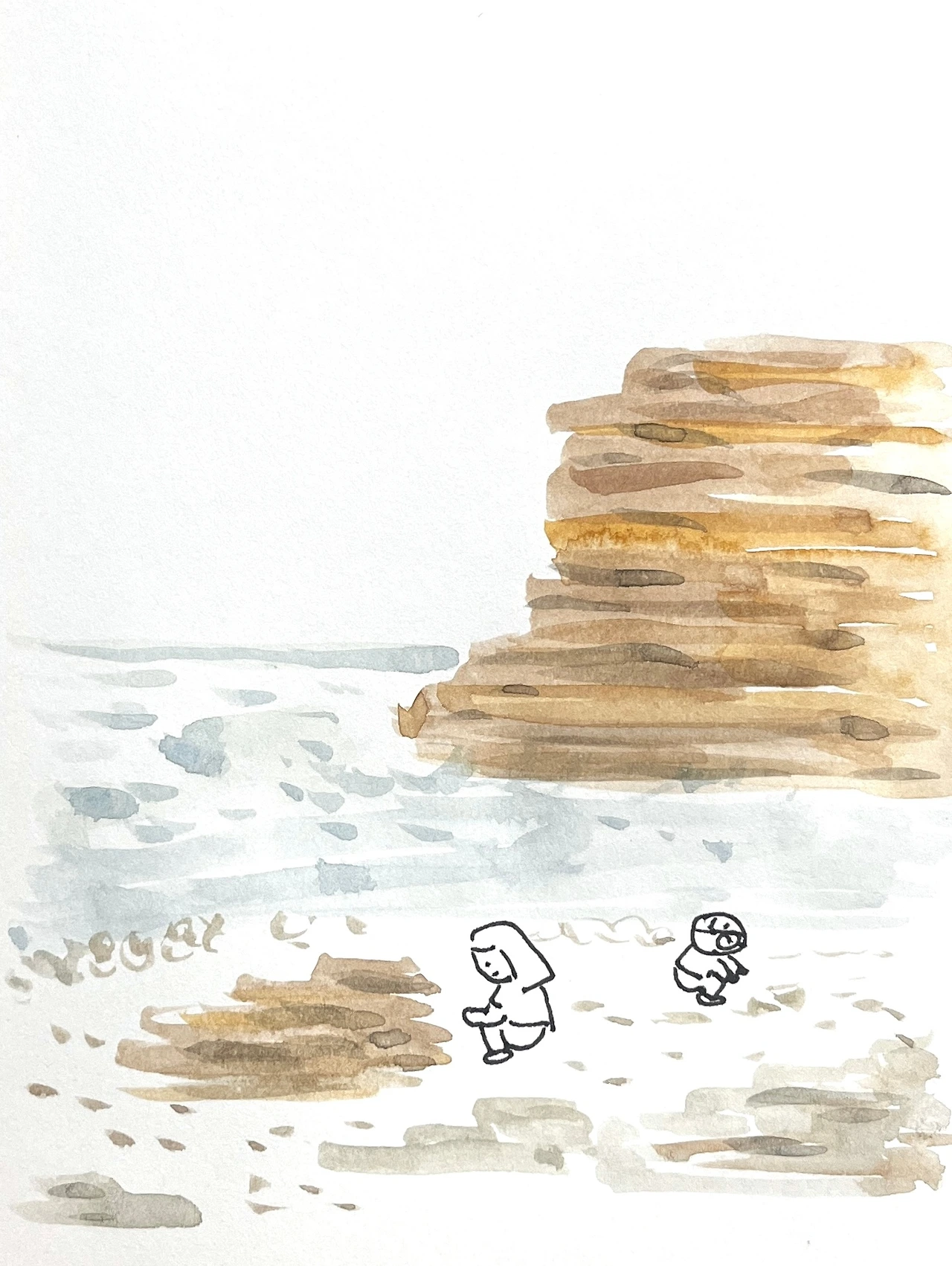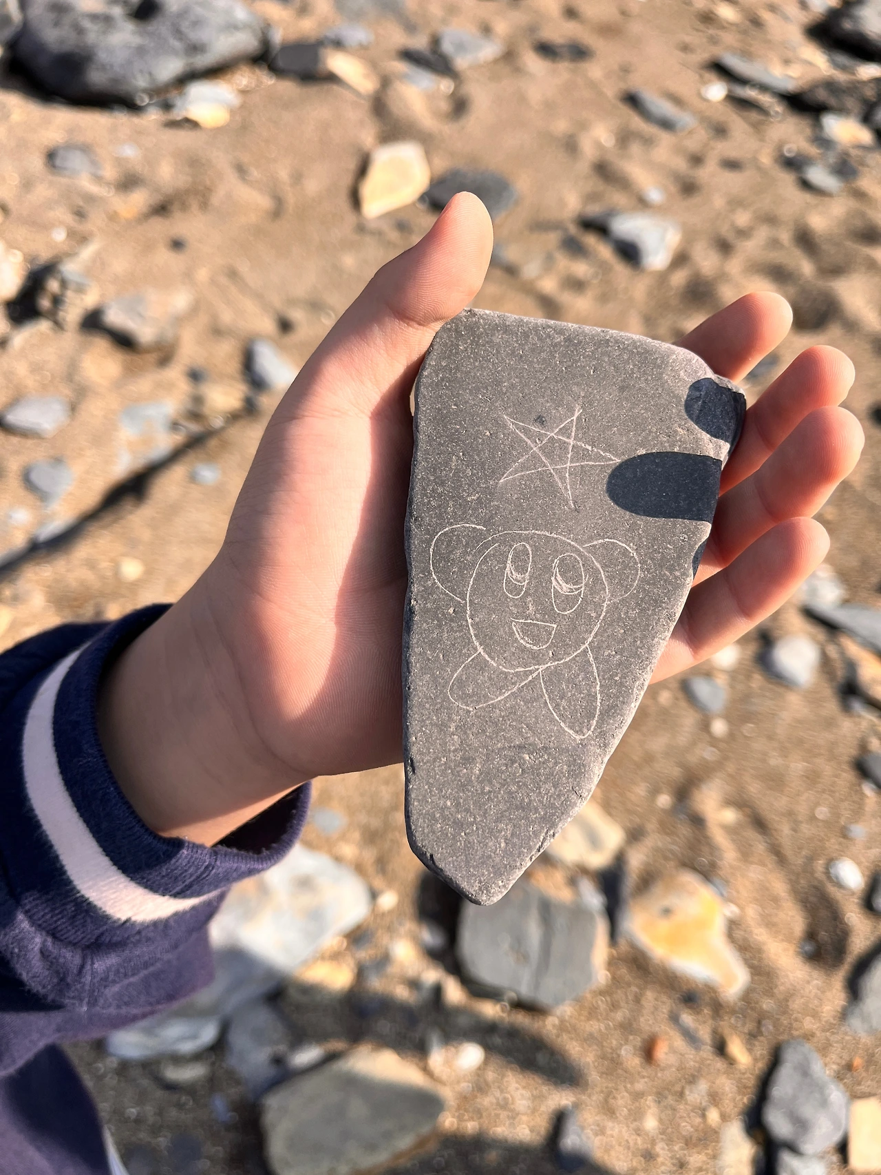 채석강의 돌들은 계속 쪼개져서 얇은 판 같았는데 판판한 돌 위에 돌로 그림을 그리니 분필로 그림을 그린 것 같이 되었다.
