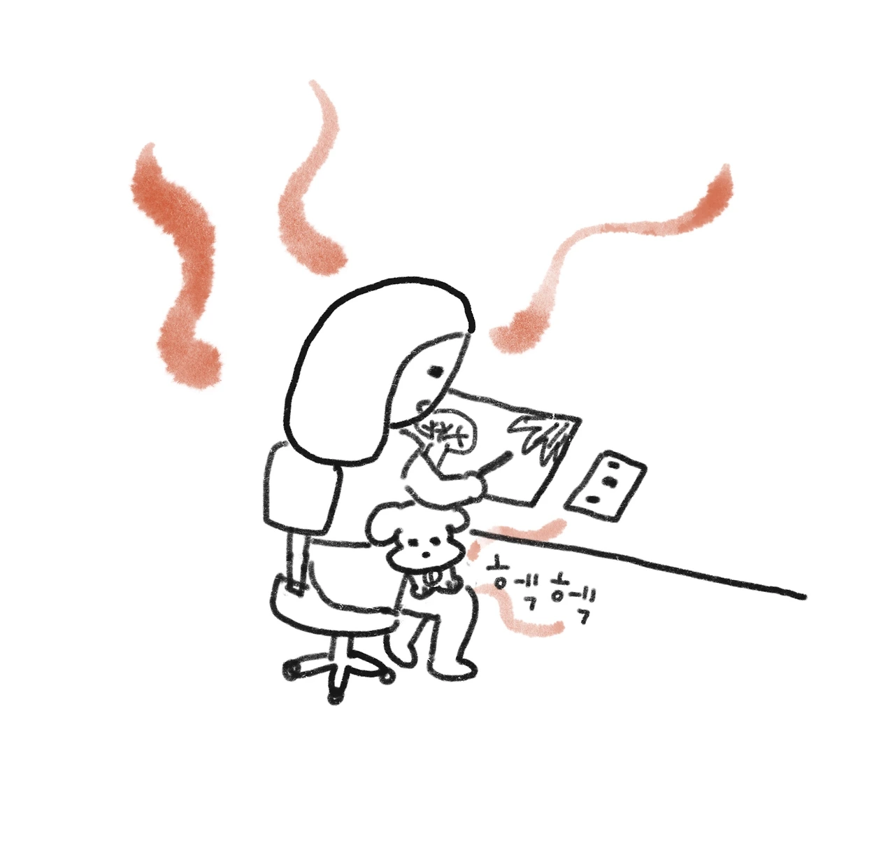 바닥에 앉든 의자에 앉든 흰둥이를 다리에 올리고 있었는데 여름엔 조금 힘들긴 했다.