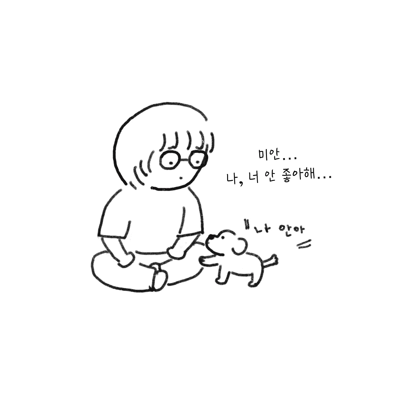 흰둥이가 다가오면 “나, 너 안 좋아해. 미안. “
