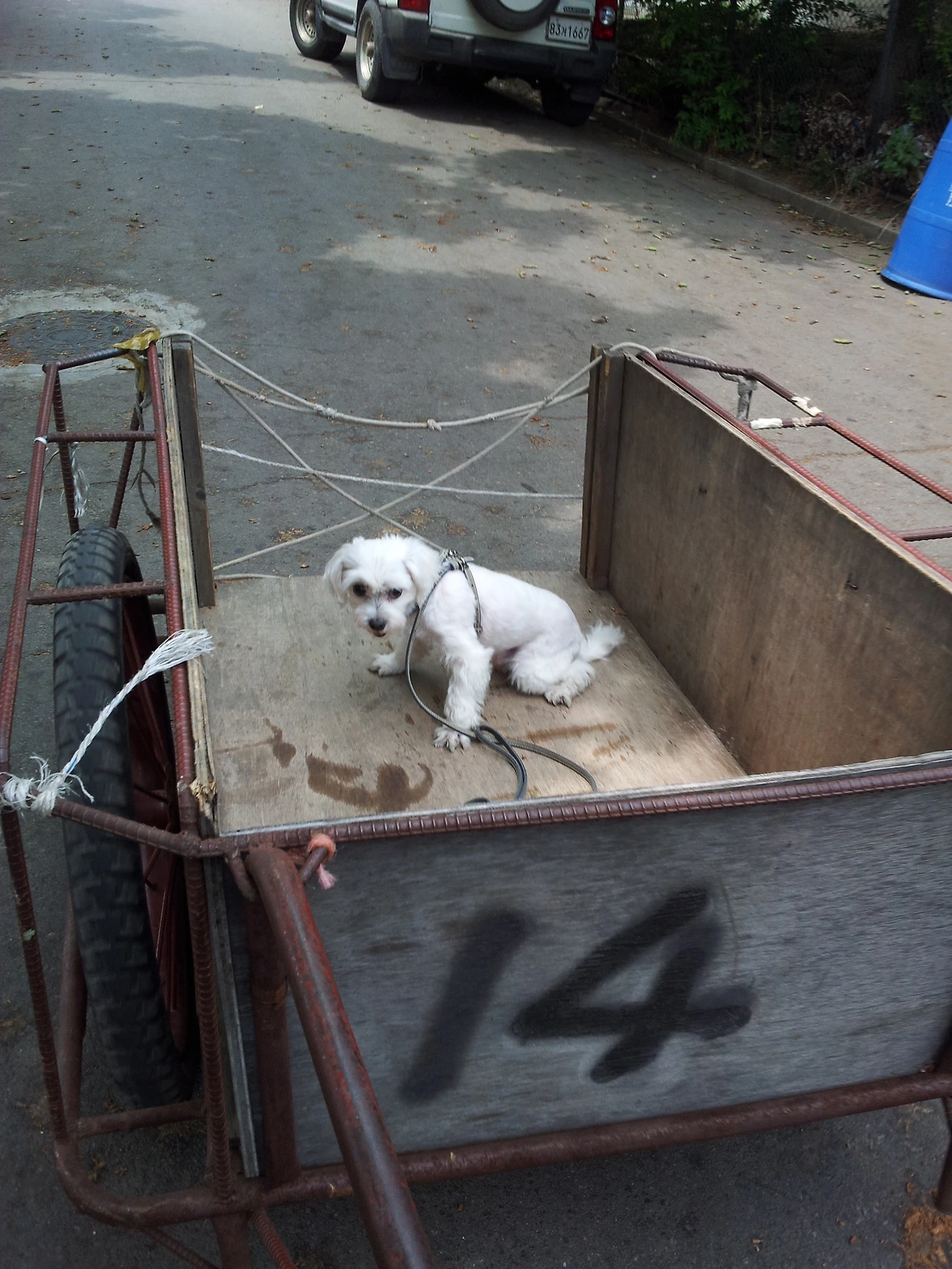 아무도 없어서 흰둥이도 자유롭게 돌아다녔다.