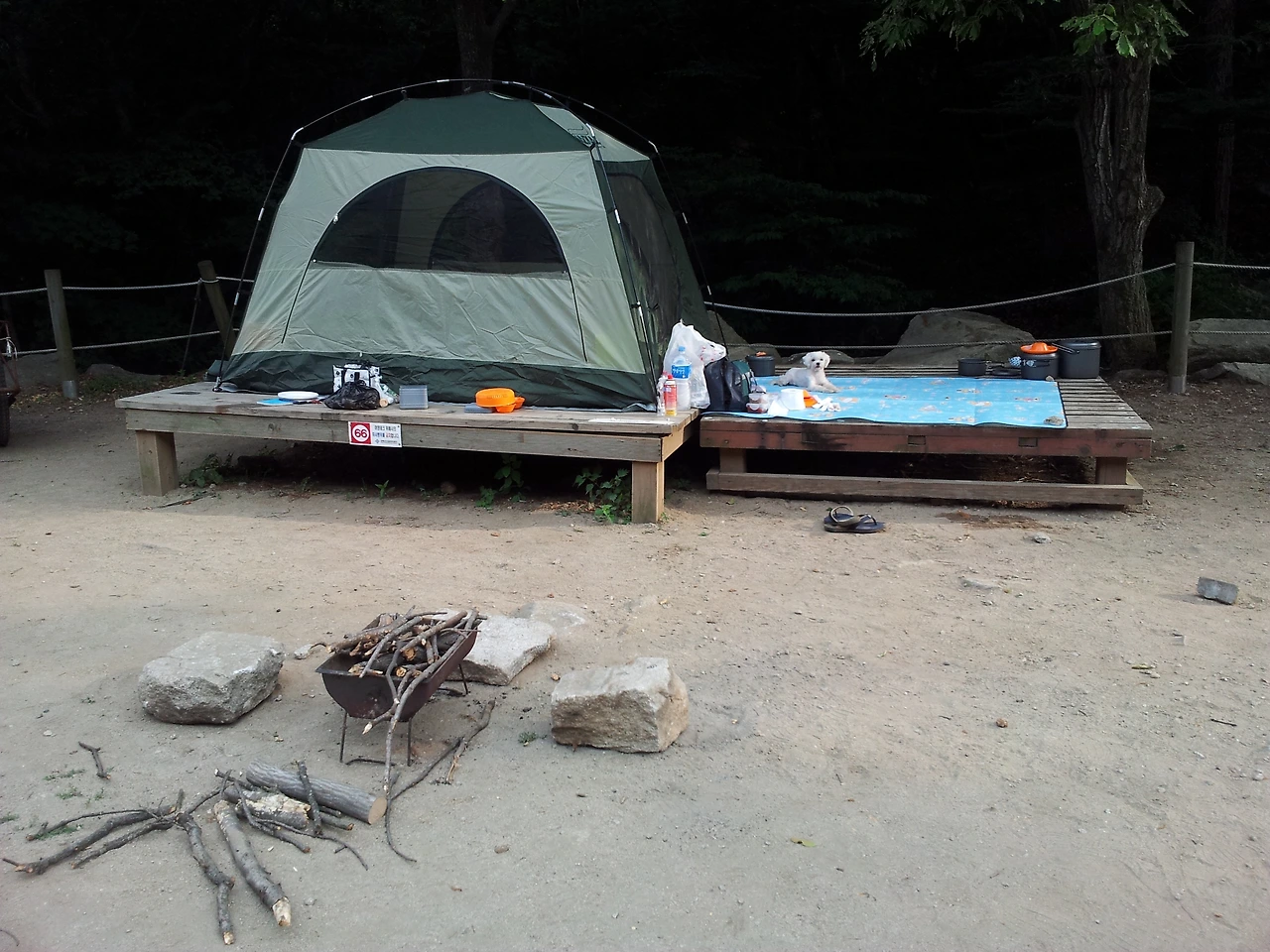 데크 하나에는 텐트를, 하나에는 돗자리를 폈다.