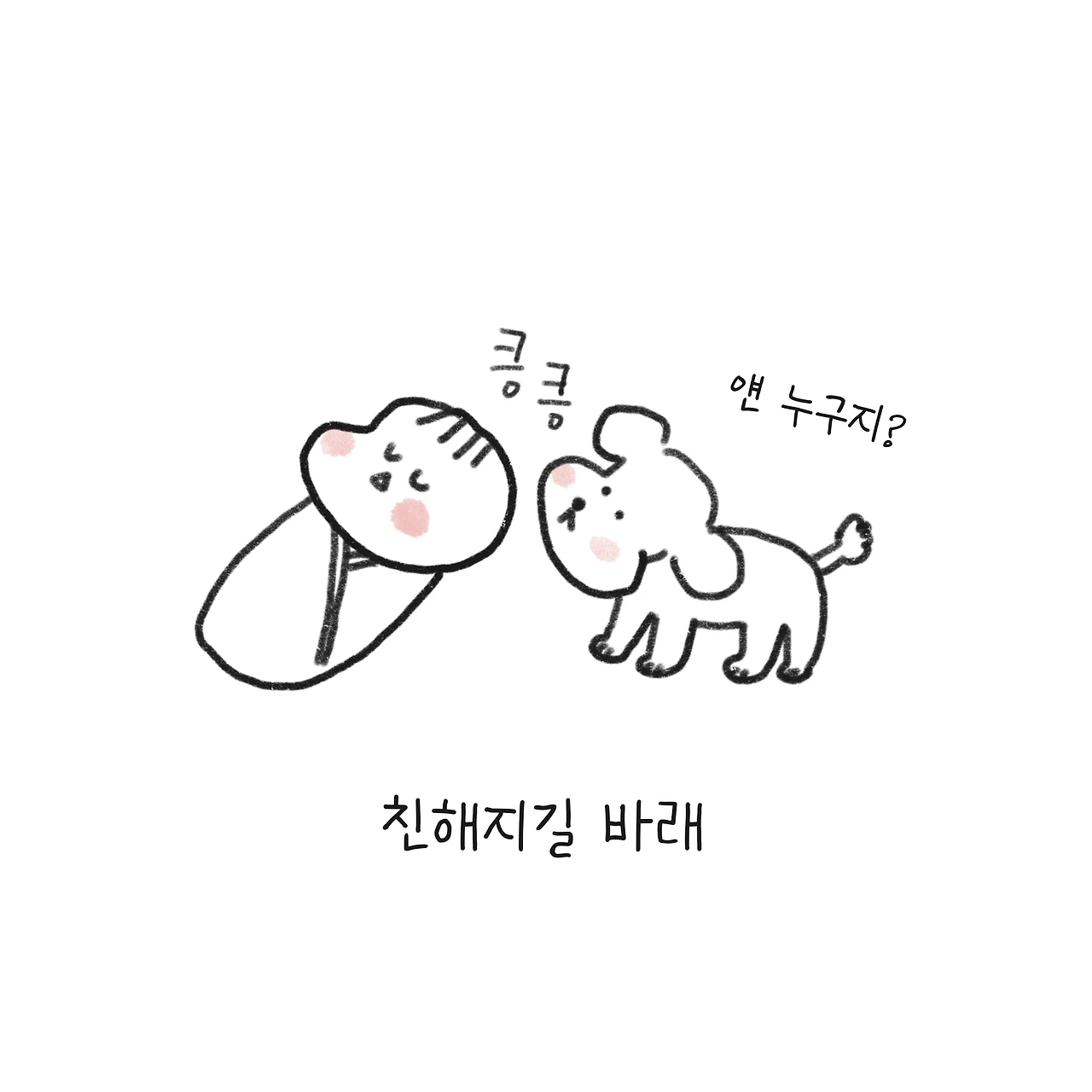 흰둥이는 ‘킁킁’ 몇 번 아기 머리 냄새를 맡더니 별 관심을 보이지 않았다.