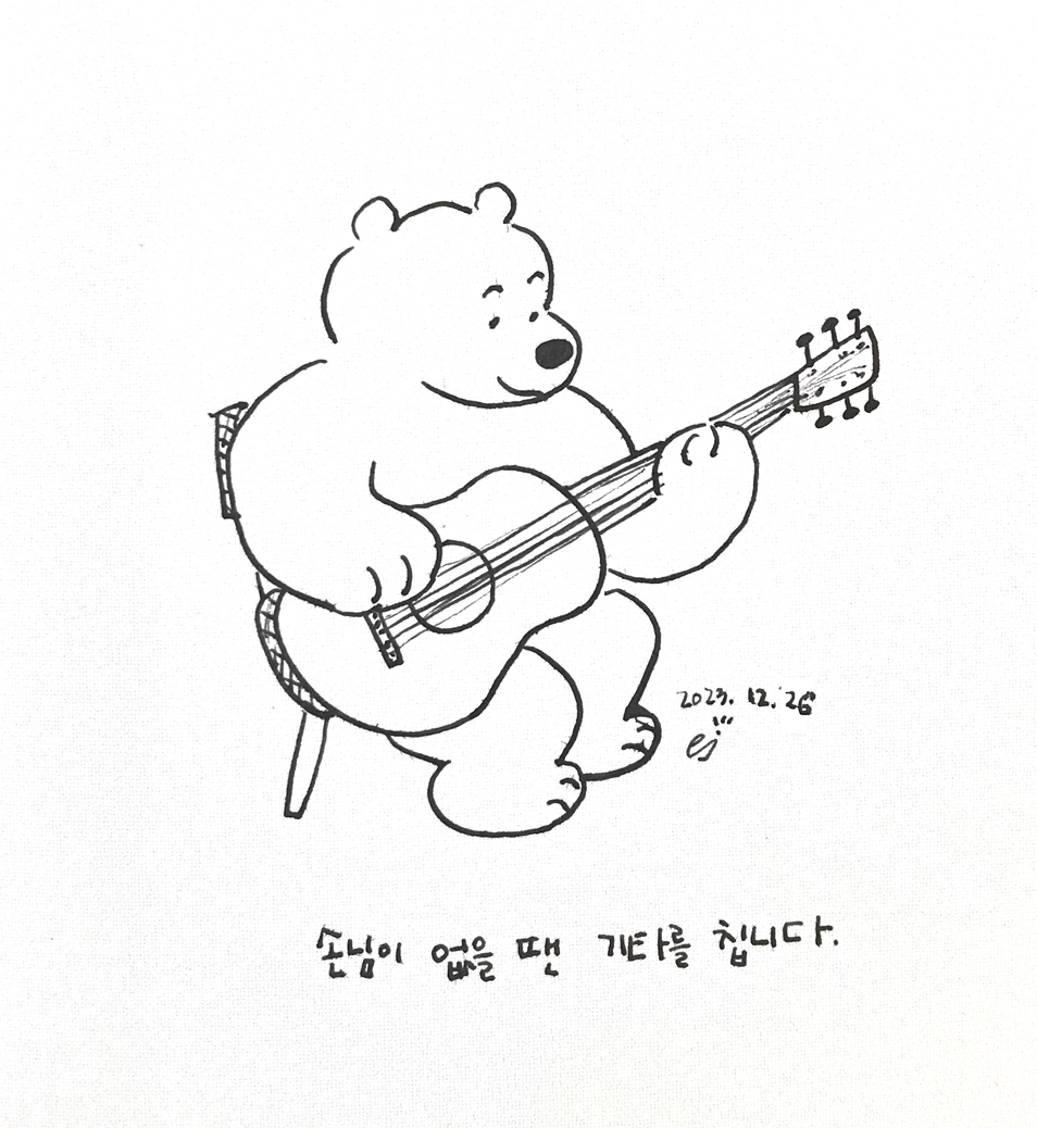 (곰 사장이 기타를 치고 있으니 손님이 들어온다.)