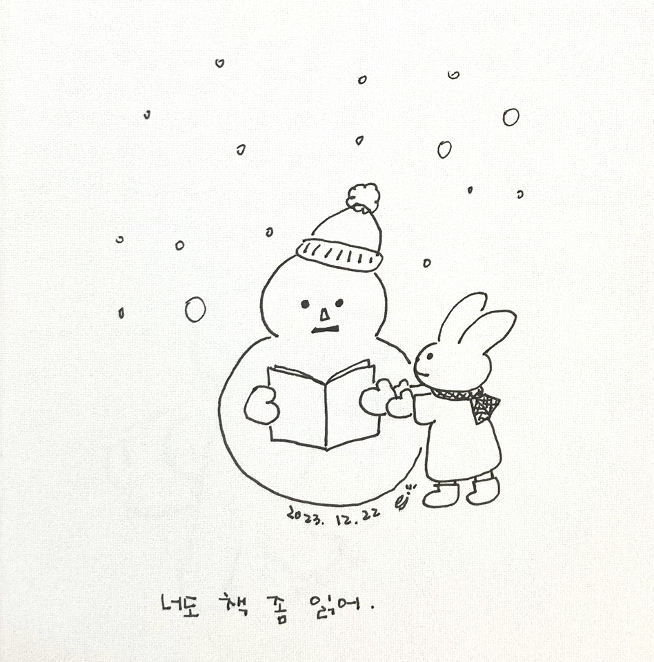 누군가 만들어 놓고 간 눈사람이 책방 앞에 있으니 책이라도 쥐어줘야겠다.