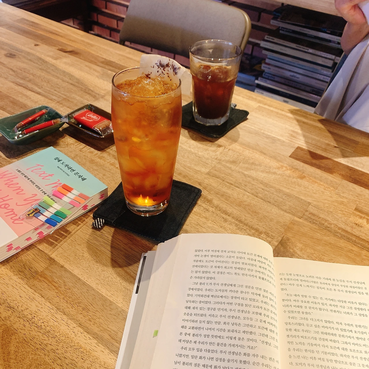 가득 찬 3년이 된 모임. 이번달 책은 <집에 도착하면 문자해>. 우리를 대변하는 듯한 문장들이 곳곳에 있던 책.