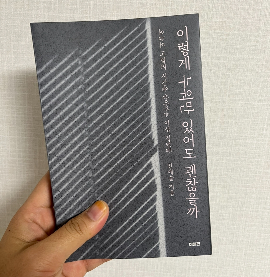 책방에 진열된 이 책을 보았을 때, 궁금함이 있어서 기회가 될 때 읽어 보아야겠다 생각했다. 마침 친구가 알맞게도 선물을 해주어 읽을 수 있었던 <이렇게 누워만 있어도 괜찮을까>는 스스로를 고립 여성 청년이라 이야기하는 저자가 ‘오늘도 고립의 시간을 살아가는 여성 청년들’을 만난 이야기를 담은 (그는 그 주제로 논문을 썼다) 책이다. 내가 이 책이 궁금해졌던 것은 너무 공감되는 제목이어서 라기 보단, 오히려 그 반대에 가깝다. 내게 있어 ‘고립 여성 청년’이 실은 낯선 용어였기 때문이었다. 그러나 어떤 이야기든 나와 전혀 별개이고 상관없는 이야기가 어디 있겠냐싶은 생각을 가지고 있기도 해서 이 책을 읽기 시작했다.