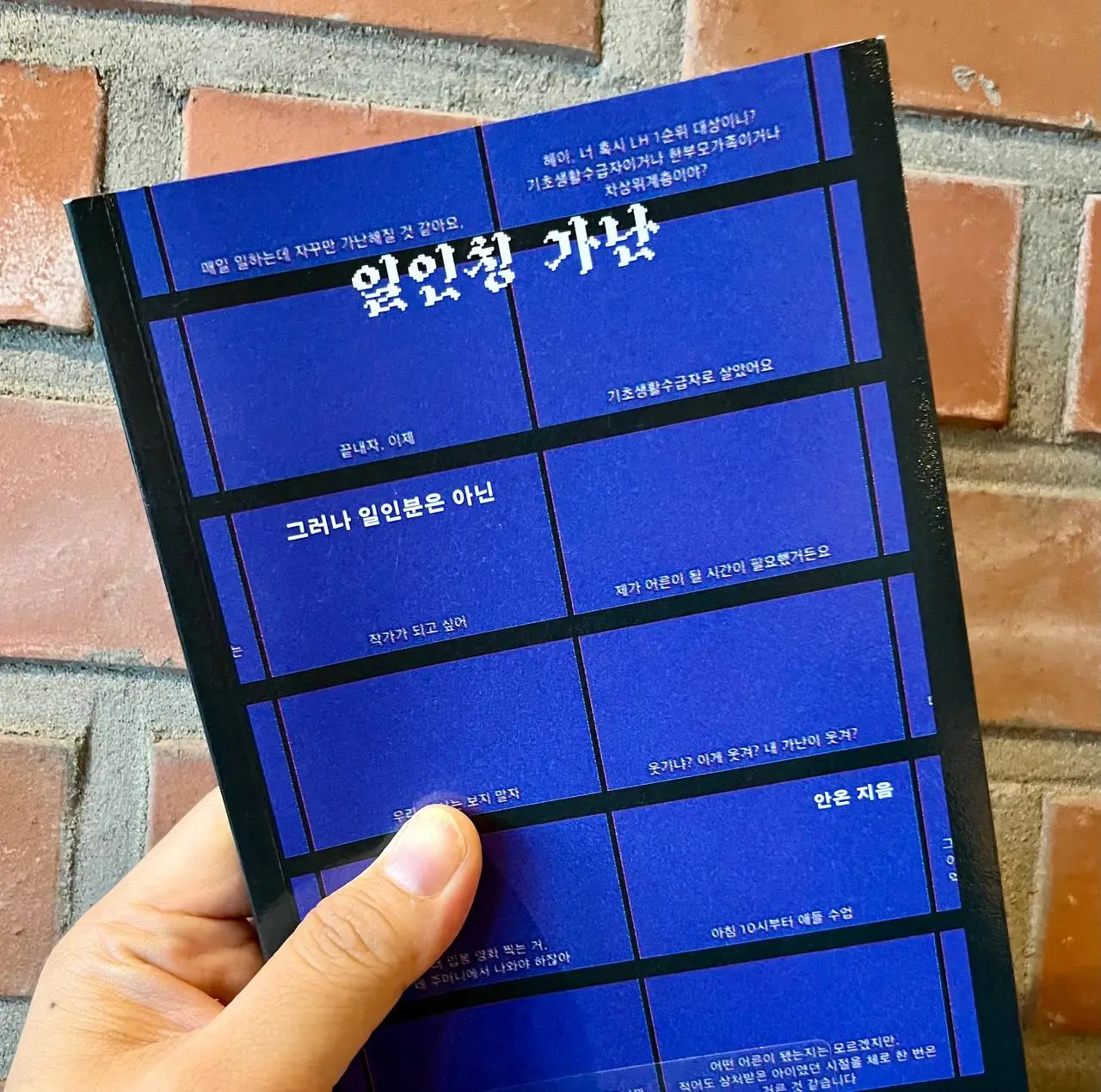 그 지점은 가난의 원인이 무엇이냐에 따라, 몇 살에 그런 가난을 경험하느냐에 따라, 비/수급 여부에 따라 달라진다. 특히 수급 여부, 그러니까 "제도권 안에 들어온 사람들하고 들어오지 못한 사람 사이의 차이가 너무 크"다. 기초생활수급자였던 나는 제도권 안에 있었기에 제도권 밖, 즉 수급 밖의 가난이 어떠한지는 멀리서 보고 들었으되 그 사정에 훤하지 못하다. 그래서 '가난'을 주어로 문장을 쓸 때는 심히 망설였지만, 그래도 썼다. 다른 누군가가 이어서 일인칭의 가난을 쓸 테니까. 세상에는 빈곤 계측 모델로는 잡히지 않는 일인칭의 쟁쟁한 목소리들이 필요하다.