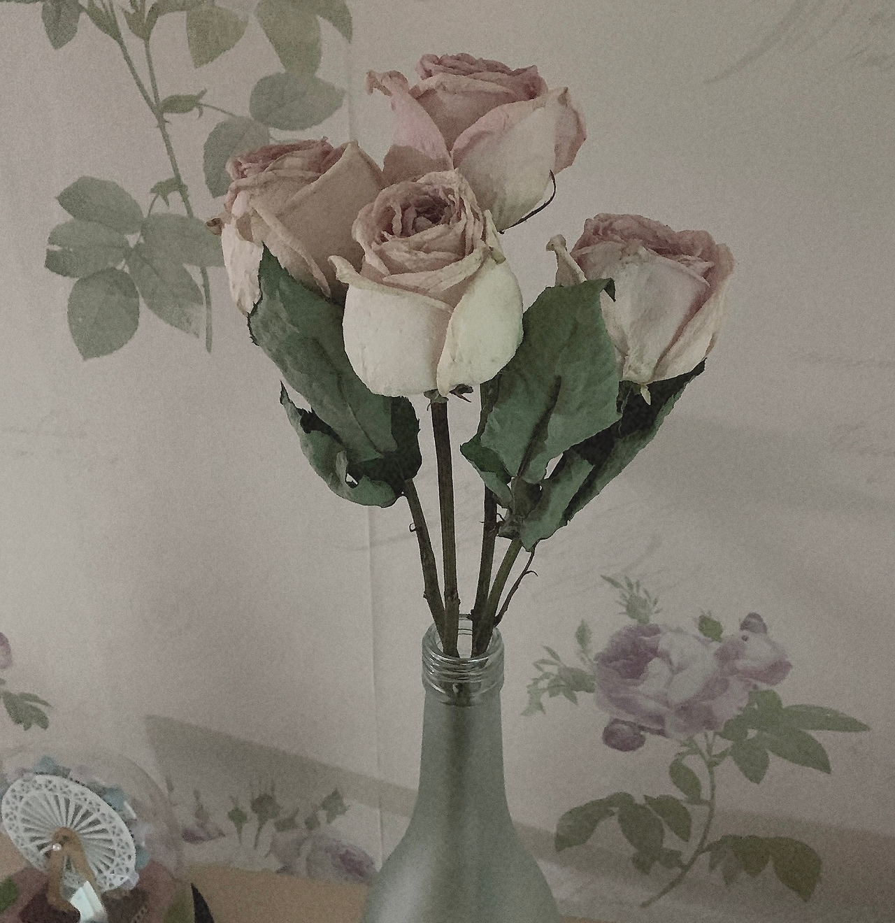 타지역으로 출근하는 친구를 배웅하고는 다시 이불 속에 들어가지 않고 깨어 앉았다. 바삭바삭 잘 마른 열 송이의 장미 중 네 송이를 병에 담아 장식한다. 친구들과 마신 경주 법주 병을 보고 드라이플라워를 꽂으면 좋겠구나, 싶어서 밤새 물에 불려둔 병의 종이를 깨끗히 떼어냈다. 나머지 여섯 송이는 아직 벽에 걸려있다. 주방에서 보니 내 시선을 올려도, 내 시건을 멀리 응시해도 꽃이 있구나. 친구가 고이 걸어준 덕분에 느집에서 만든 드라이플라워가 되었다. 내가 모르던 것들, 지나쳐온 것들은 주변의 사람들의 영향으로 알아가고 다시 바라보게 된다. 그들도 나로인해 그렇다. 그렇게 서로의 것들을 조금씩 알아가게 되고, 공유할 수 있는 취향이 생기고, 만들어져간다.
