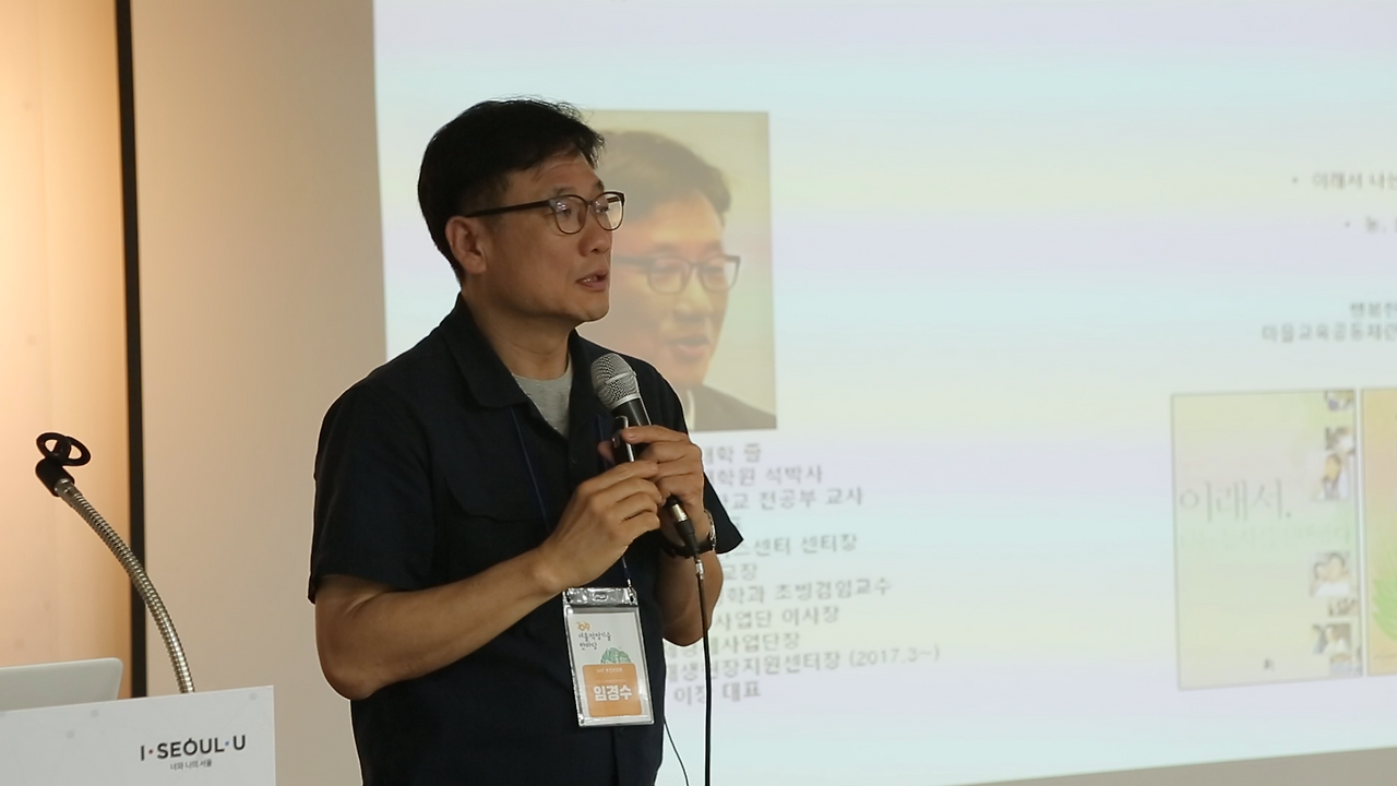 기조강연 첫 번째 강연자로 나선 「협동조합 이장」의 대표 임경수 박사는 오랜 기간 마을과 지역 현장에서 쌓아온 경험을 바탕으로 <마을, 공동체 활동과 적정기술의 현황>에 대해 발표했습니다. 그는 전통적인 마을의 개념이 해체되어 가고 있는 현 시점에서 적정기술이 다양한 방식으로 여러 분야에 활용되는 것은 마을 활동과 공동체 활동을 촉진시킬 수 있는 기작으로서 희망과 기대를 갖게 하는 대목이라고 말하며, 결국 마을과 공동체에 다가가기 위해서 ‘적정기술이 어떤 역할과 기능을 해야 하는가’가 곧 적정기술의 사명이라고 설명했습니다.
