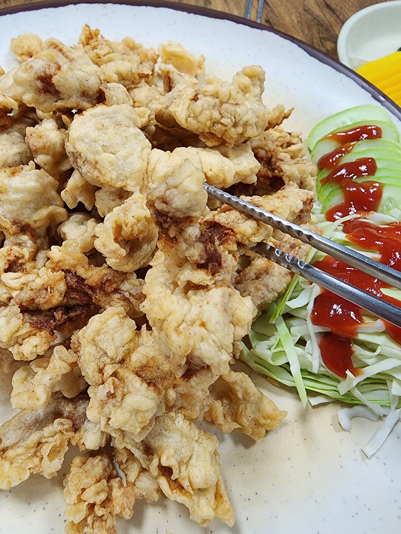 '강릉에도 고기튀김을 하는 곳이 있지만, 래성각의 고기튀김은 정말 차원이 다르구나. 엄청나다.'