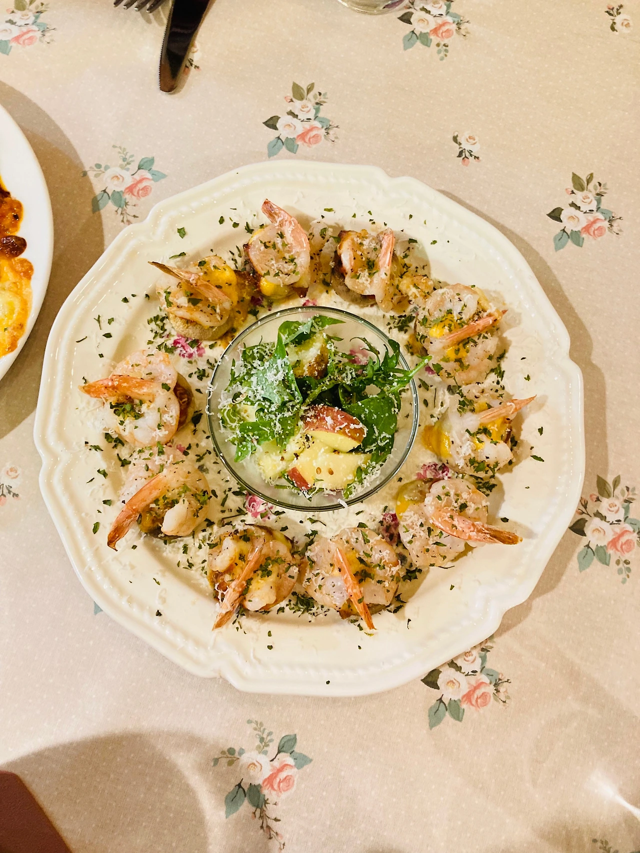 순식간에 가지구이가 우리들의 입속으로 퇴장하고 이제는 양송이구이 차례다. 붉게 익혀진 작은 손질새우가 꼬리를 살랑거리면서 양송이 구이에 올라가서 나의 포크를 유혹한다. 한꺼번에 포크로 집어서 입으로 가져간다. 치즈와 버터, 다진 햄과 채소로 속을 채운 양송이가 새우 모자를 벗으며 인사한다.