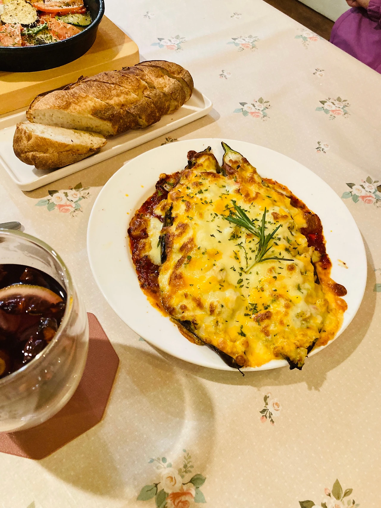 돼지고기와 양파 등으로 속을 채우고 치즈로 덮어 구워낸 가지구이가 뜨겁게 등장한다. 가지구이도 라따뚜이에 사용된 고소하고 달콤하며 감칠맛 넘치는 토마토소스를 속이불로 덮고, 겉은 치즈이불을 덮었다. 먼저 먹으라는 마담의 말씀에 나는 포크와 나이프를 들어서 먹기 좋게 슥슥 썰어 놓는다. 가지요리에 대한 나의 생각은 아래와 같다.