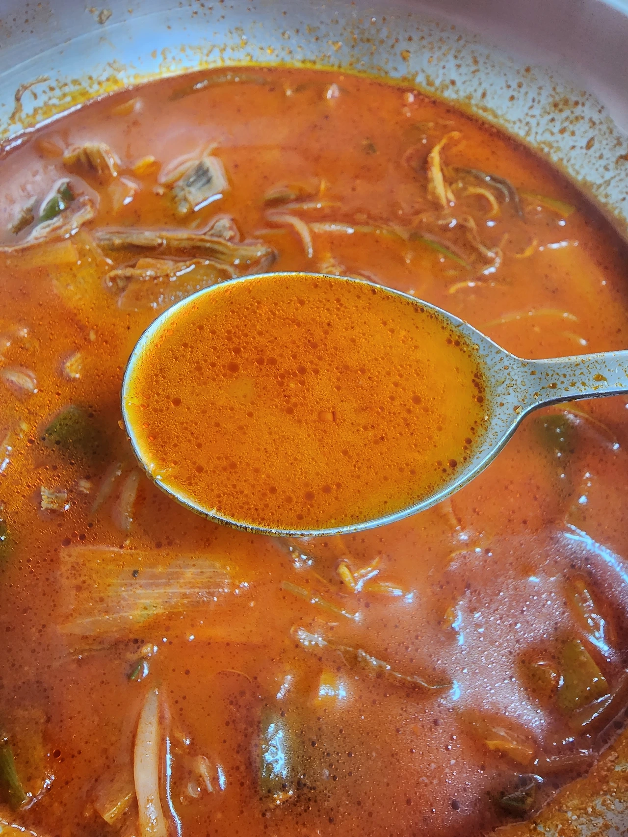 그리고 이제 육개장 국물을 한 입 먹어본다.