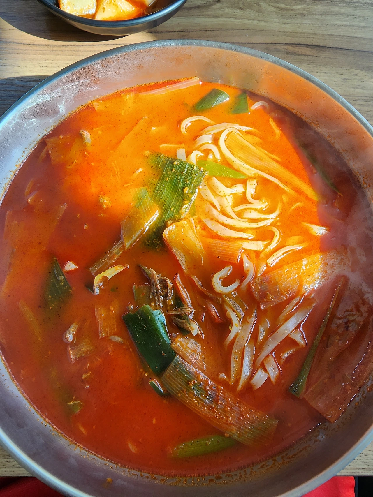 '빨간 거'에 살짝 도톰한 칼국수면이 들어가 있다.