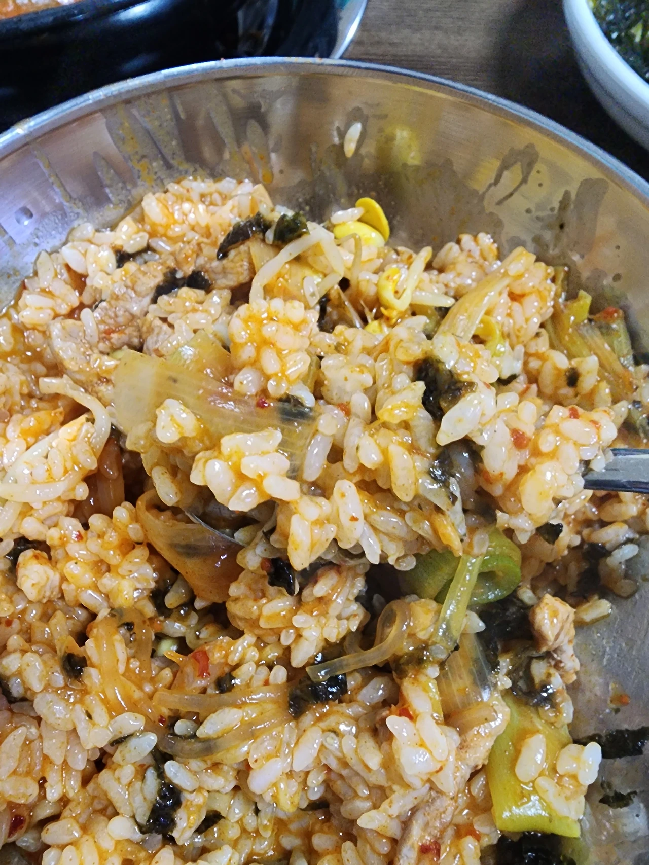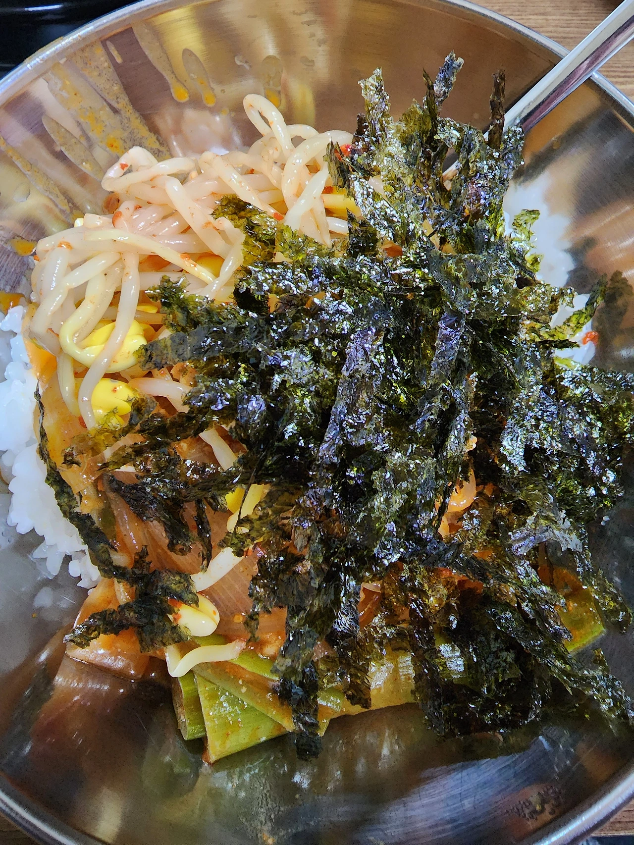 사장님의 가르침대로 잘 비벼진 돼지찌개비빔밥