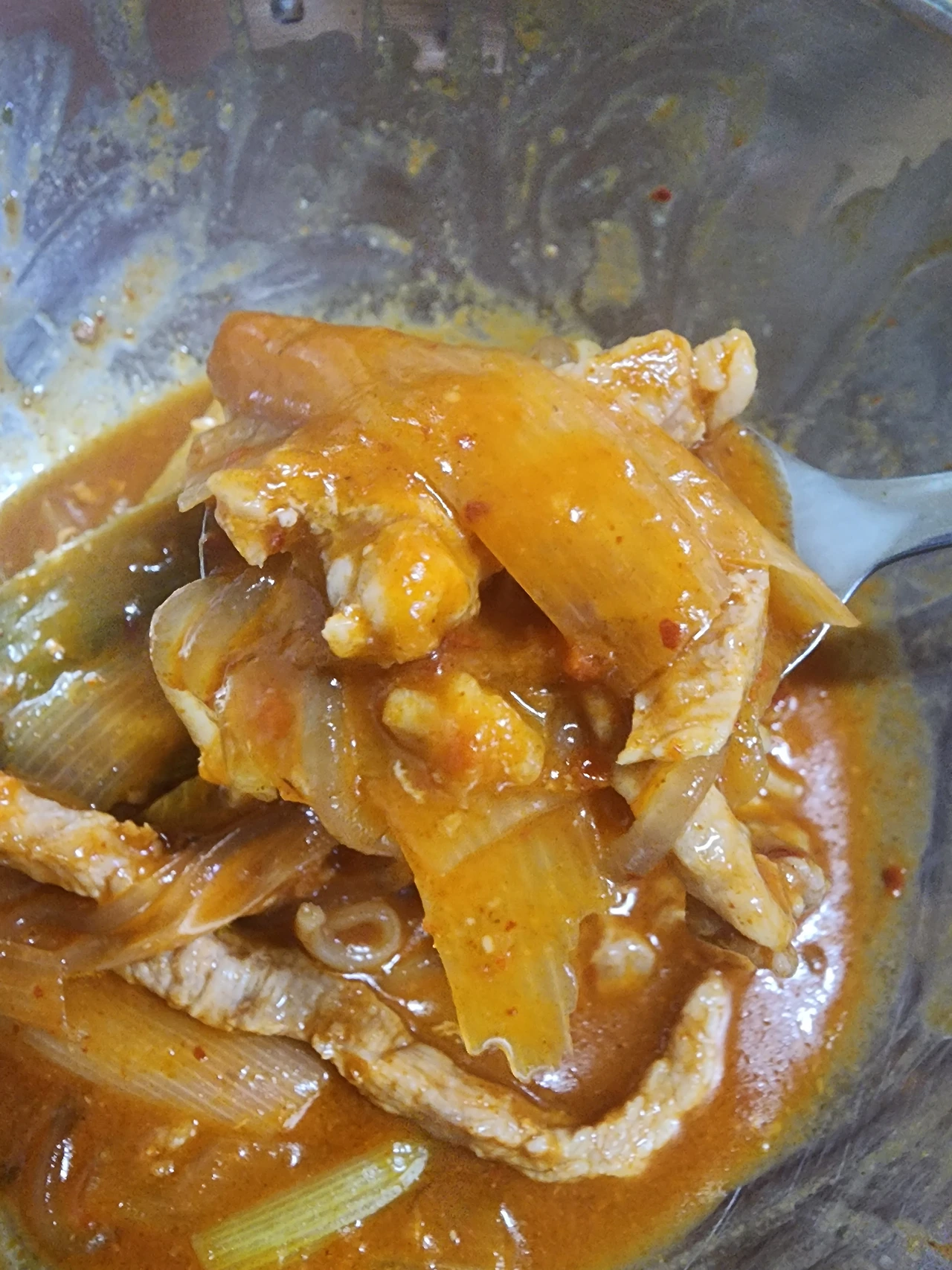 부드러운 돼지고기가 이제는 살짝 되직해진 매콤 달콤한 국물과 어우러져 고기를 씹을 때마다 찌개의 양념맛이 입안으로 흘러나오는 기분이 좋다. 아, 비벼먹지 말고 찌개랑 밥을 따로 먹을 걸. 만약 다음에 또 이 집에 온다면 반드시 밥과 찌개를 따로 먹어보리라. 그리고 라면 사리를 추가로 넣는 것보다는, 사리 없이 조금 더 맑은 형태와 찌개 양념 본연의 맛을 즐기고 싶다는 생각을 했다. 라면사리에서 우러나온 전분이 국물로 스며들어 온전한 양념의 맛을 침해하고 국물을 더 무겁게 만드는 것은 나의 취향이 아니었으니까.