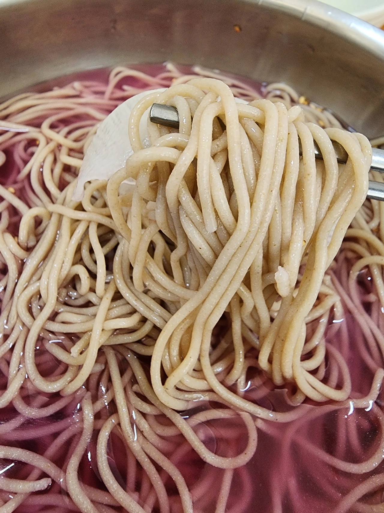 '밀가루는 하나도 안 넣으셨구나. 진짜 메밀로만 만드신 순 메밀국수네.'