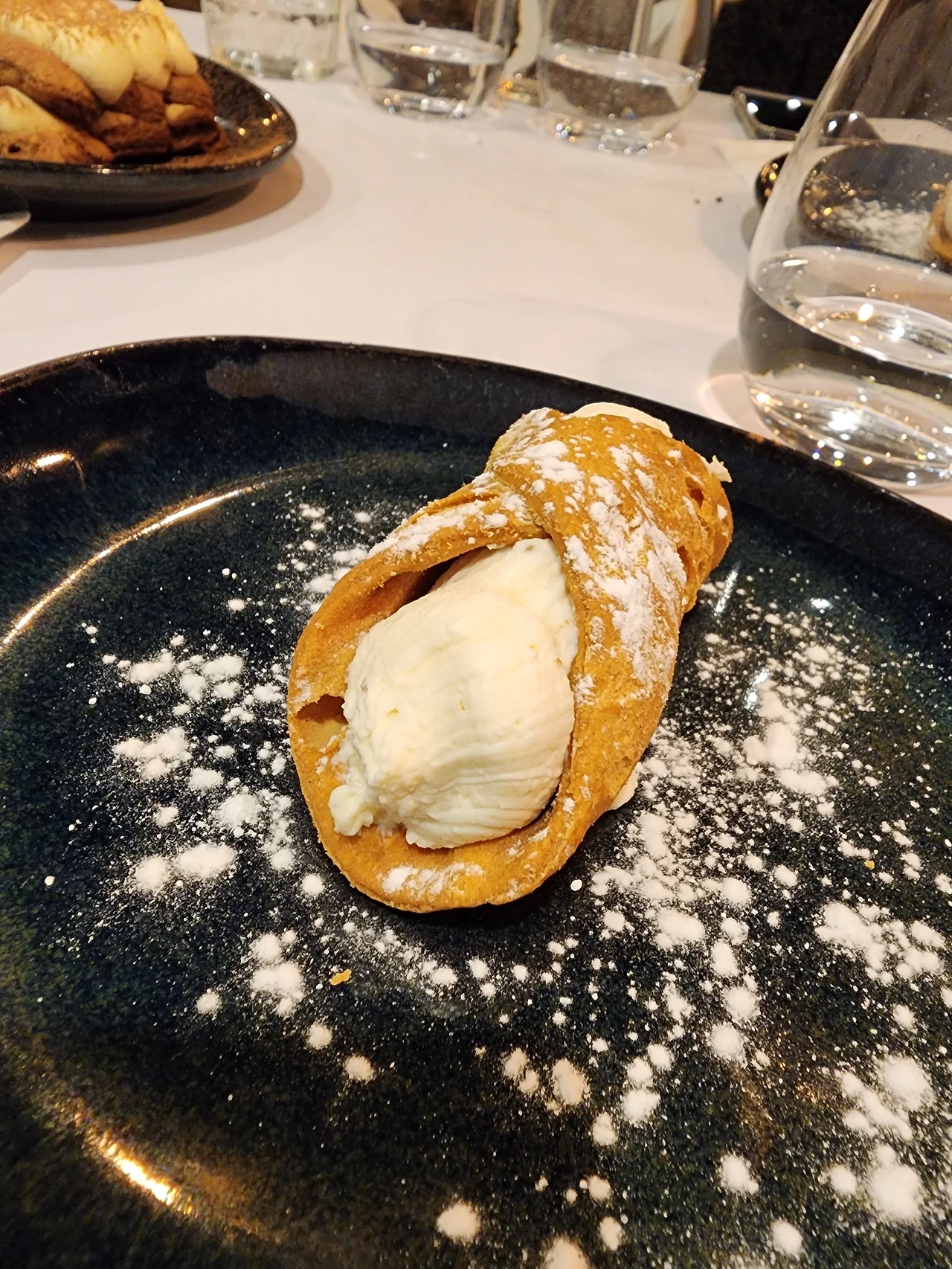 이탈리아 식당이라는 이름답게 에스프레소와 카푸치노는 기본, 이제는 강릉에서 먹을 수 없게 되어버린 추억의 간식 카눌리와 티라미수를 에스프레소와 함께 주문했다. 부엌 옆에 있는 바에서 에스프레소 머신의 스팀 소리가 '쉬익쉭'하고 몇 번 울리더니 작은 잔에 에스프레소가 설탕과 함께 등장했고, 설탕가루를 입고 리코타치즈로 가득 찬 튀김과자 카눌리와 두툼한 마스카포네 치즈를 올린 티라미수가 등장했다.