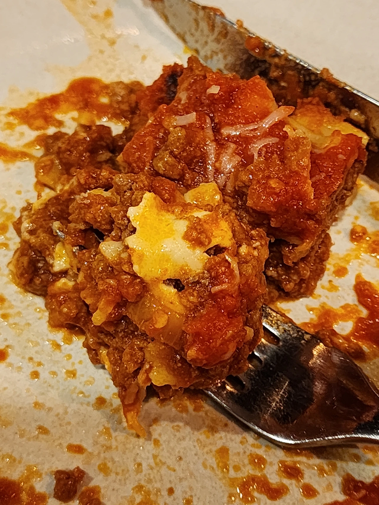 라자냐면이 보이지 않을 정도로 고기, 소스, 치즈로 가득 찬 라자냐