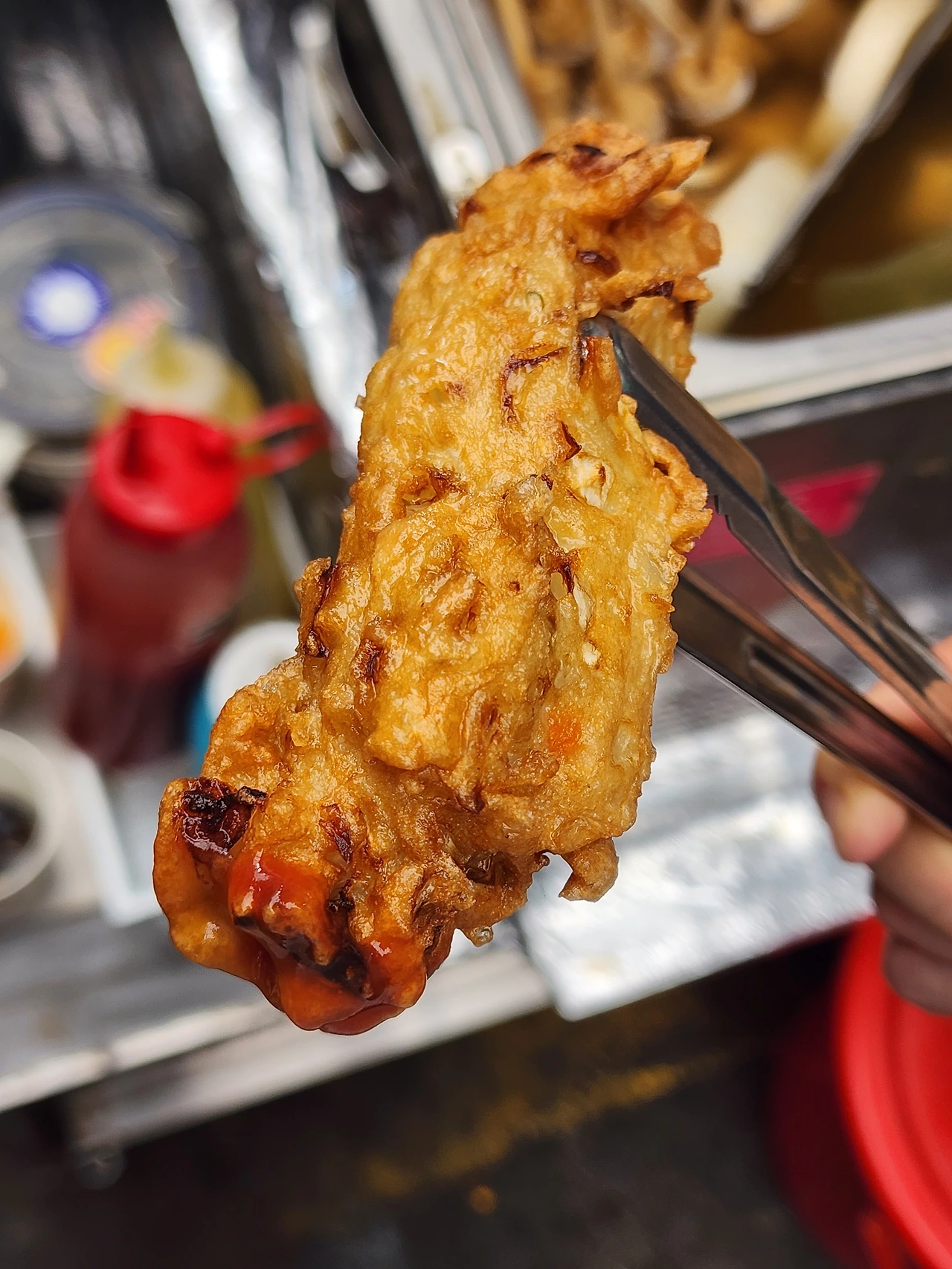 바삭한 어묵튀김의 겉면이 치아들 사이에서 사각거리는데 뜨끈 거리는 속살이 김을 펄펄 내뿜으면서 쫄깃하게 탱글거린다. 어묵 안에 다져서 들어있는 양파와 당근 등 온갖 채소조각들이 달착지근하고 부드럽게 입안에서 으깨지며 쫄깃하고 매끈한 어묵살과 어우러진다. 그리고 다시 어묵을 베어 물면 바삭한 겉면에서 말랑말랑한 속살의 움직임이 시작된다. 마음에 더 드는 점은 저렴한 가격과 원하는 대로 소스를 만들어 먹을 수도 있고, 집마다 준비된 특별한 소스를 받아서 먹을 수도 있는 것이 재미.