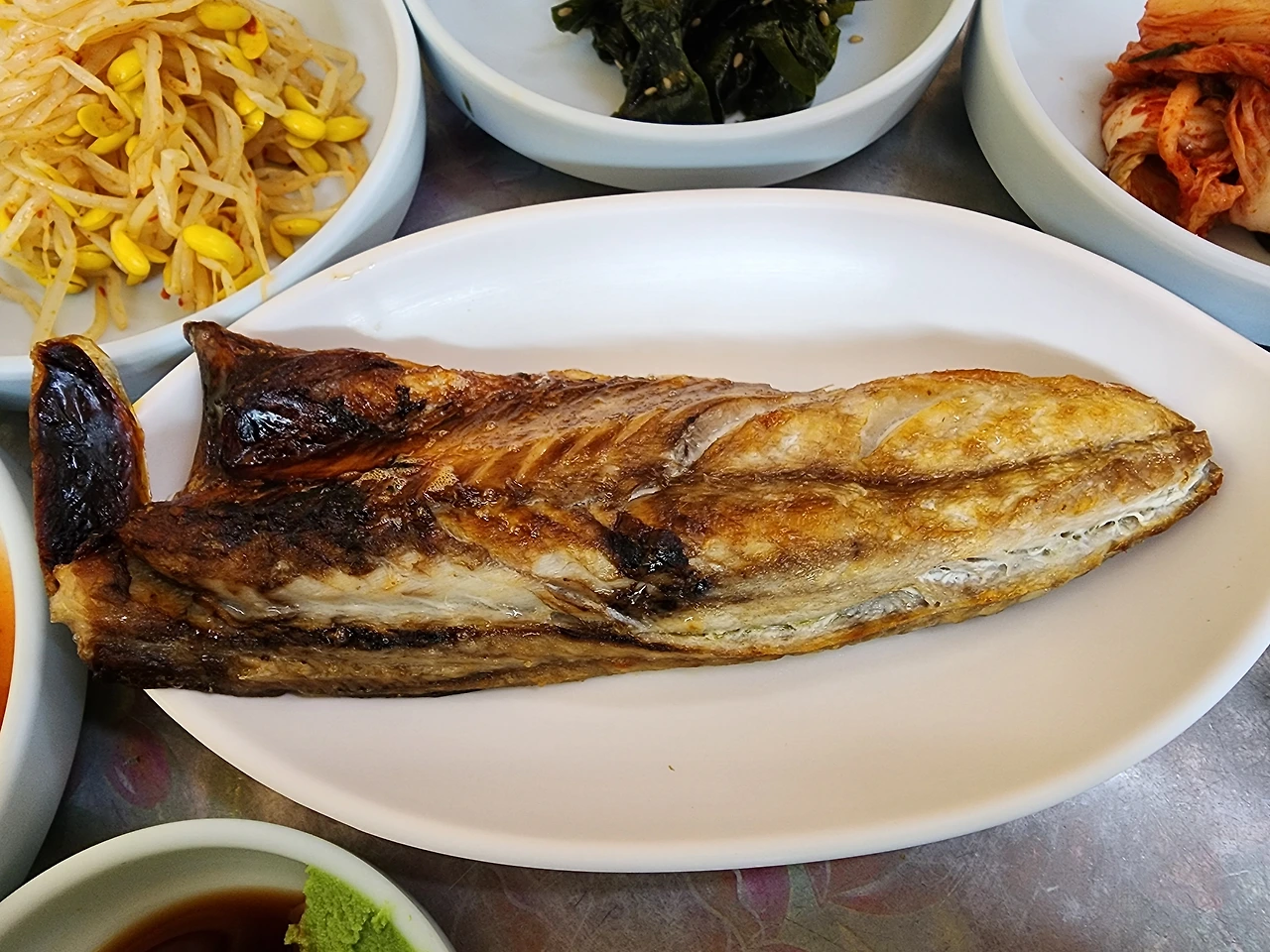 하지만 그저 청국장에 빠져있을 수만은 없다, 바삭바삭하고 노릇노릇하게 구워진 고등어구이에 젓가락을 가져가본다.