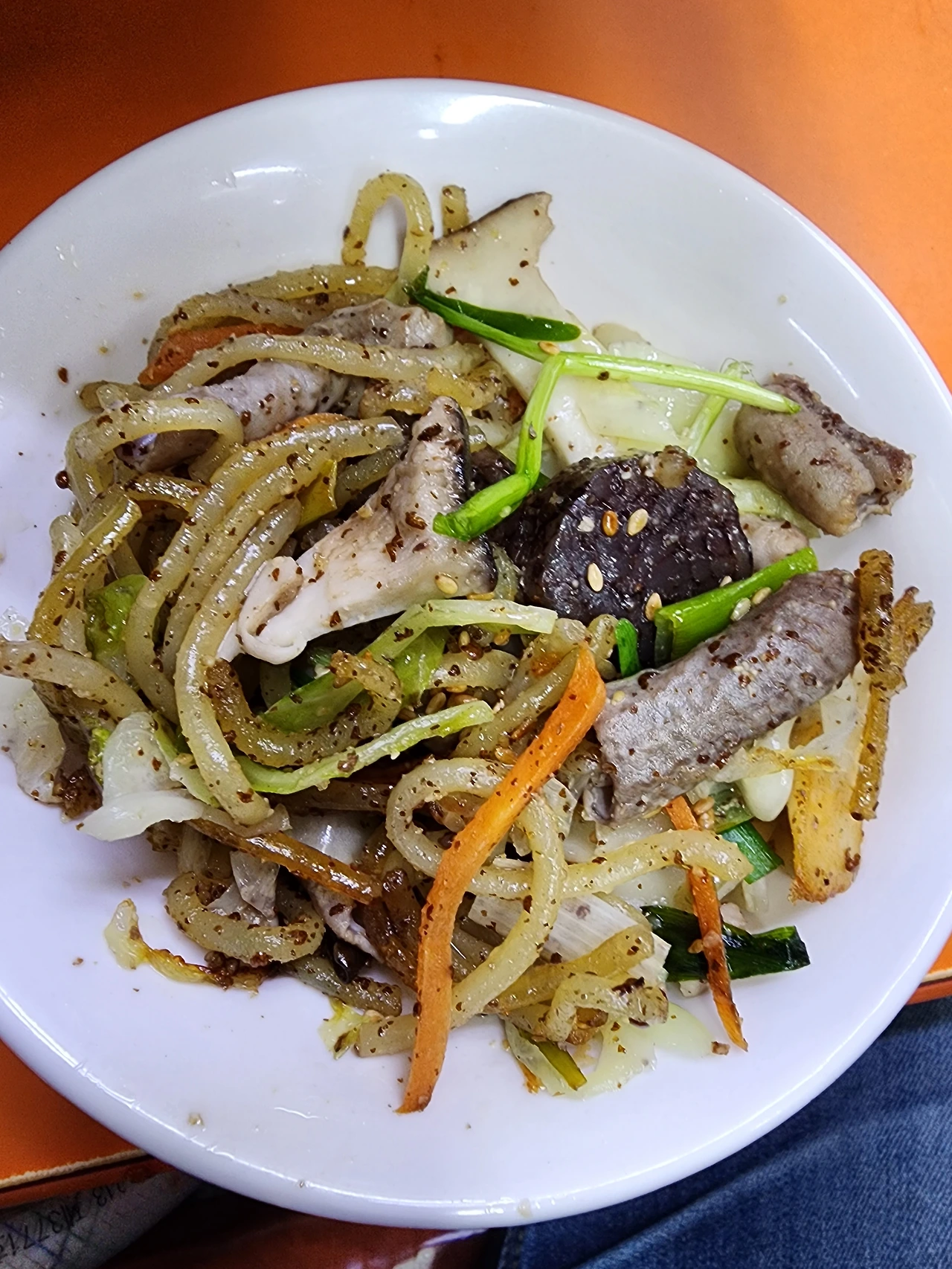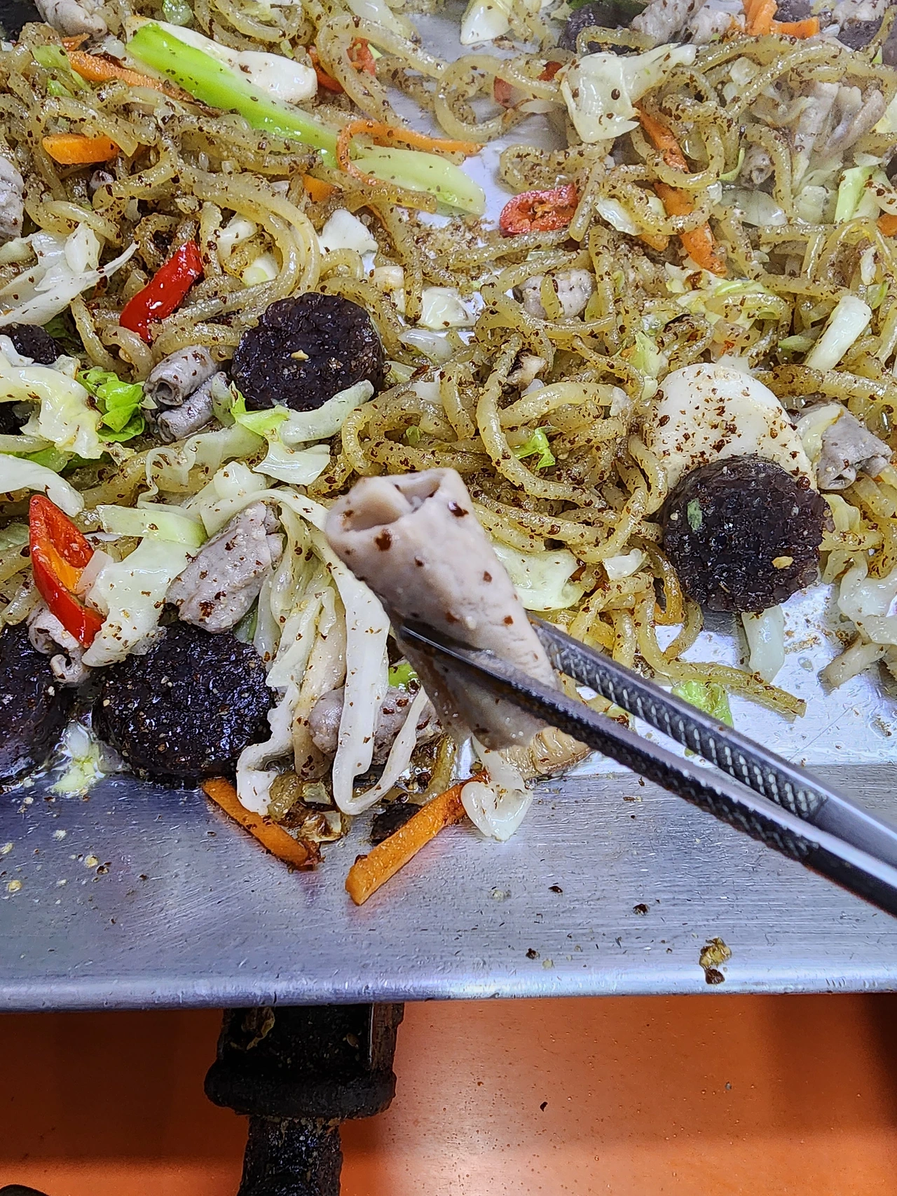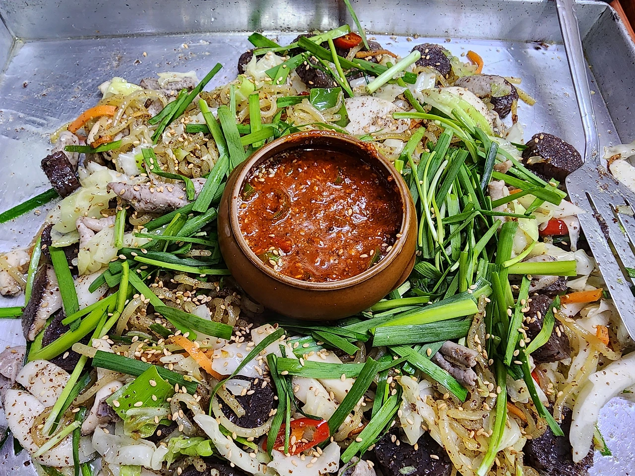 찹쌀순대를 씹으면서 잠시 고민하는 김고로, 이어서 작은 곱창조각도 씹어보지만 고소하고 짭짤한 돼지부속과 순대라는 생각이 떠나지 않는다. 그런데 무엇인가, 묘하다. '눈이 확 떠질 정도로 맛있는 맛!'이라는 생각이 들지 않지만 Y형과 나의 젓가락과 음식섭취가 끊이지 않는다, 물론 우리가 상당히 배가 고픈 상태였기 때문이라는 것도 있지만 먹으면 먹을수록 이 음식 속으로 빨려 들어가서 함께 철판에 볶아지는 기분이 들기 시작했다.