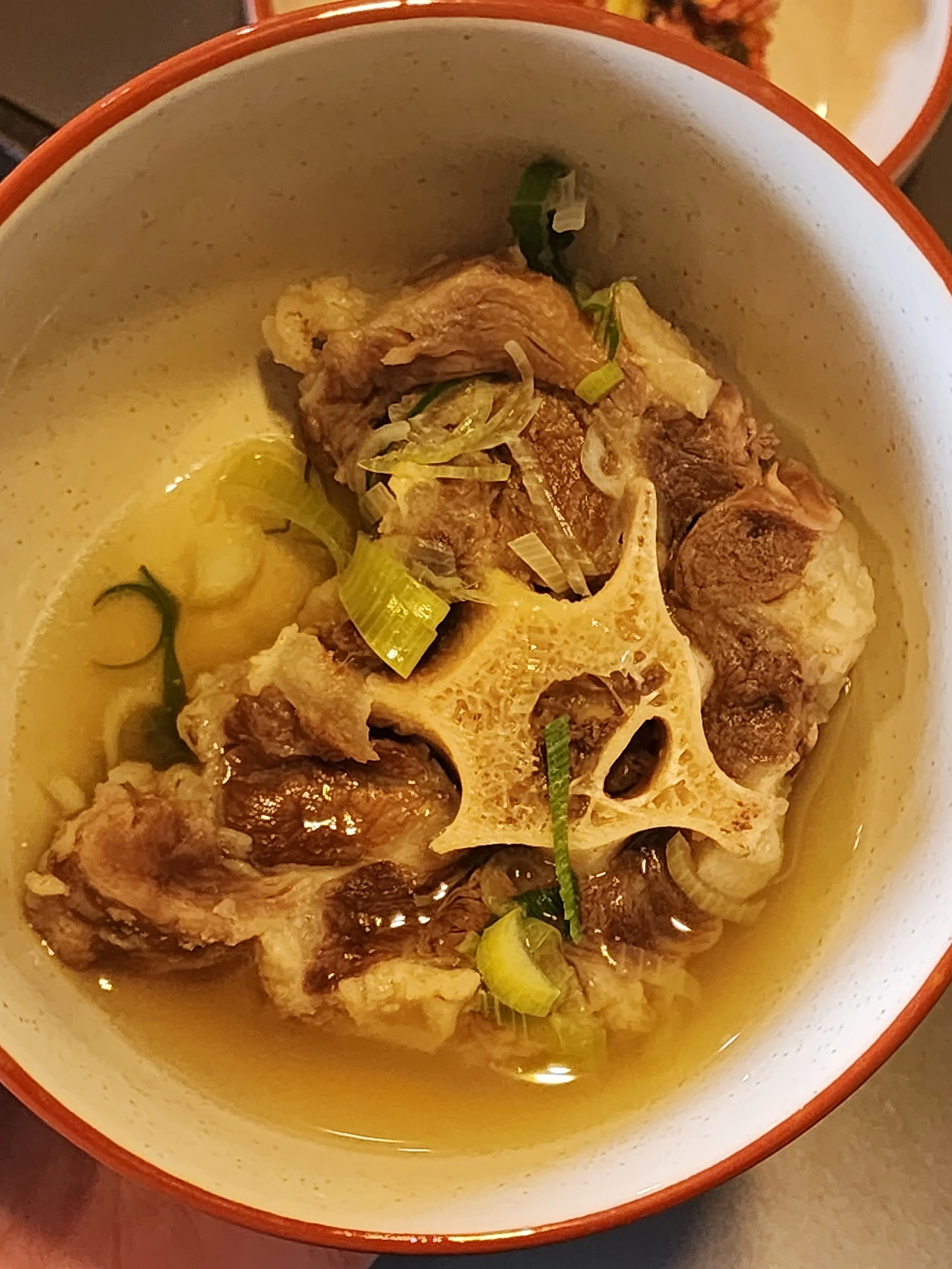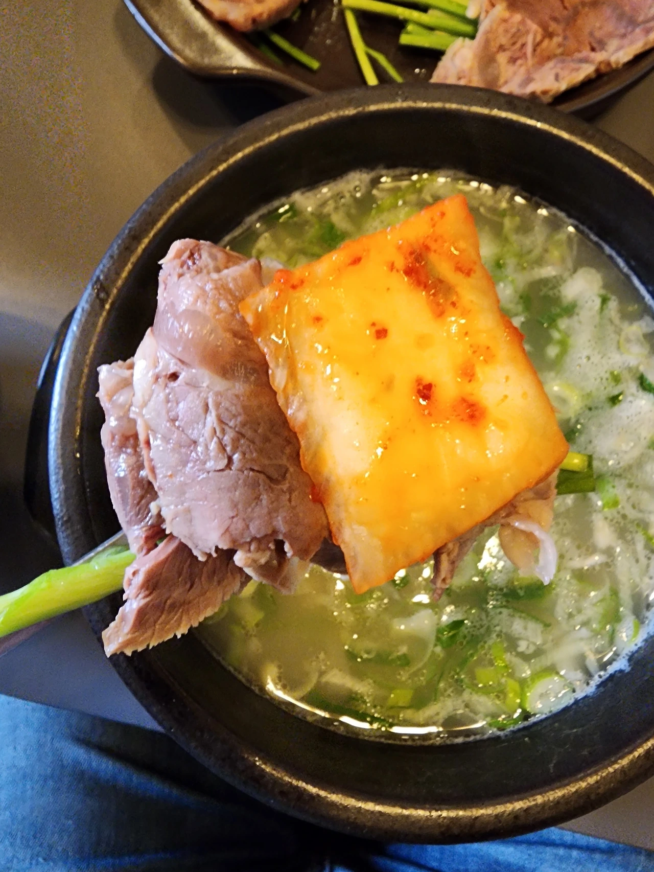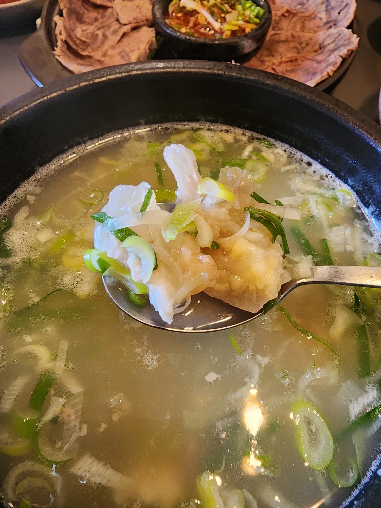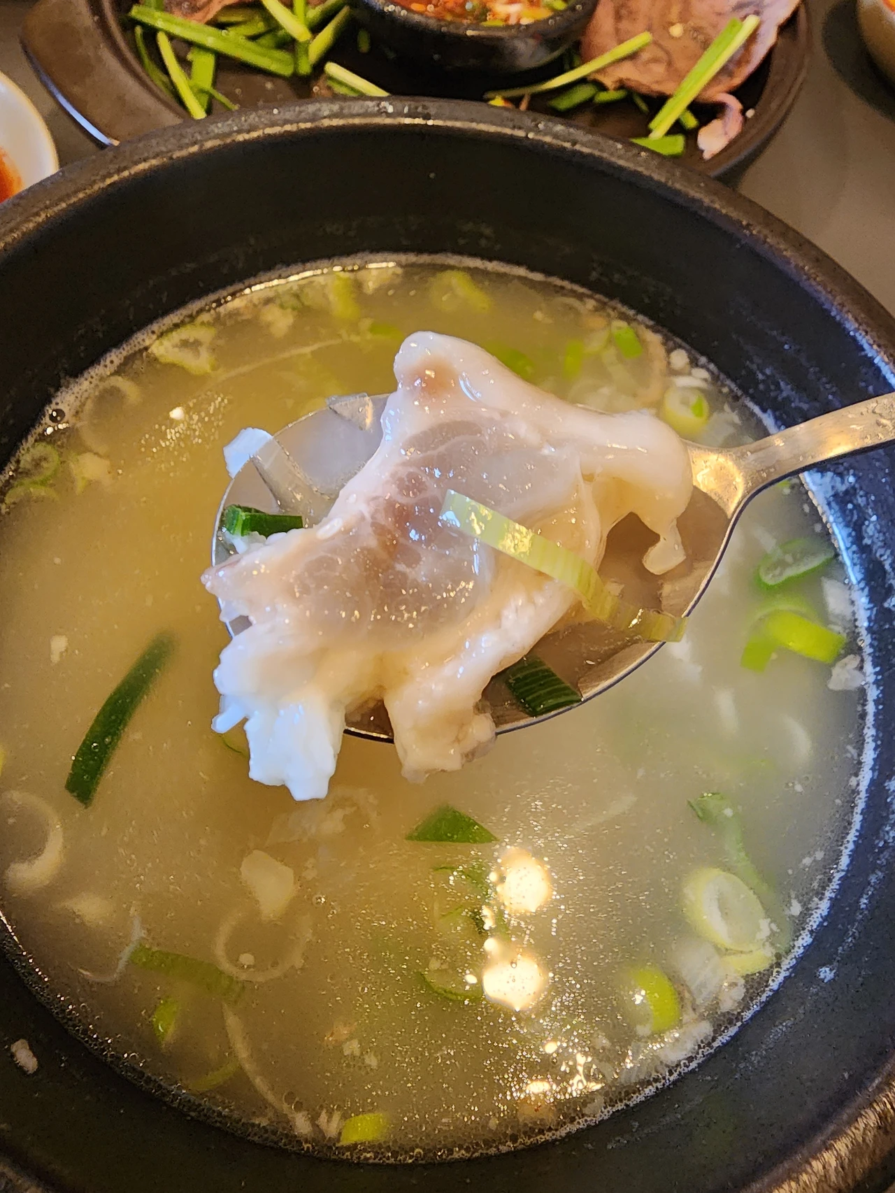 '다진대파의 향긋한 풍미가 코로 들어오면서 구수하고 깊은, 이 끈적거리는 맛은 우족이 너덜거릴 정도로 끓여져서, 그 콜라겐에서 우러나온 식감이겠지.'