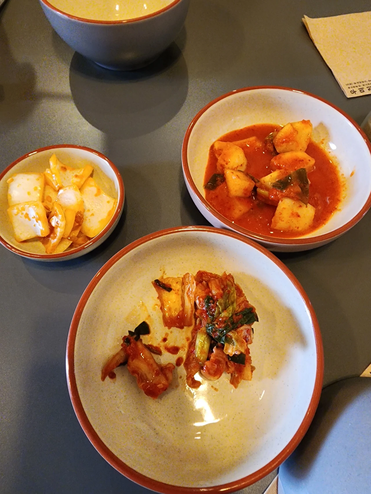 김고로와 곰군의 입에서 동시에 확신의 음성이 나오며 미간이 잠시 찌푸려진다, 진실이다. 겉절이는 짭짤하면서 매콤하며 약간의 달콤함이 버무려진 맛, 깍두기에서는 깊은 시원함과 달콤함이 정육면체로 잘려 나온 무조각의 중심부에서부터 콱! 터져 나오며 여기에 밥만 먹어도 맛있겠다는 생각이 든다.