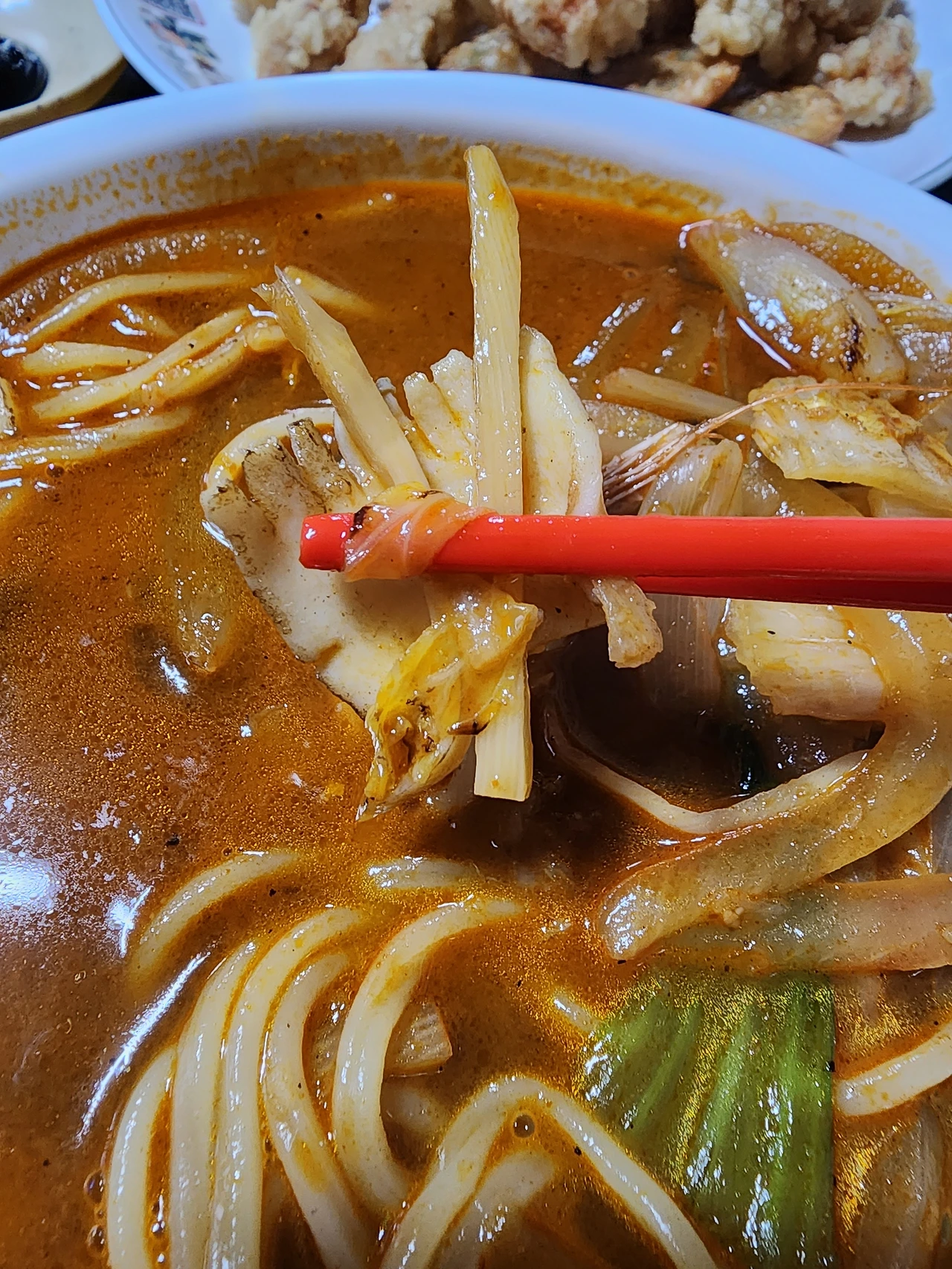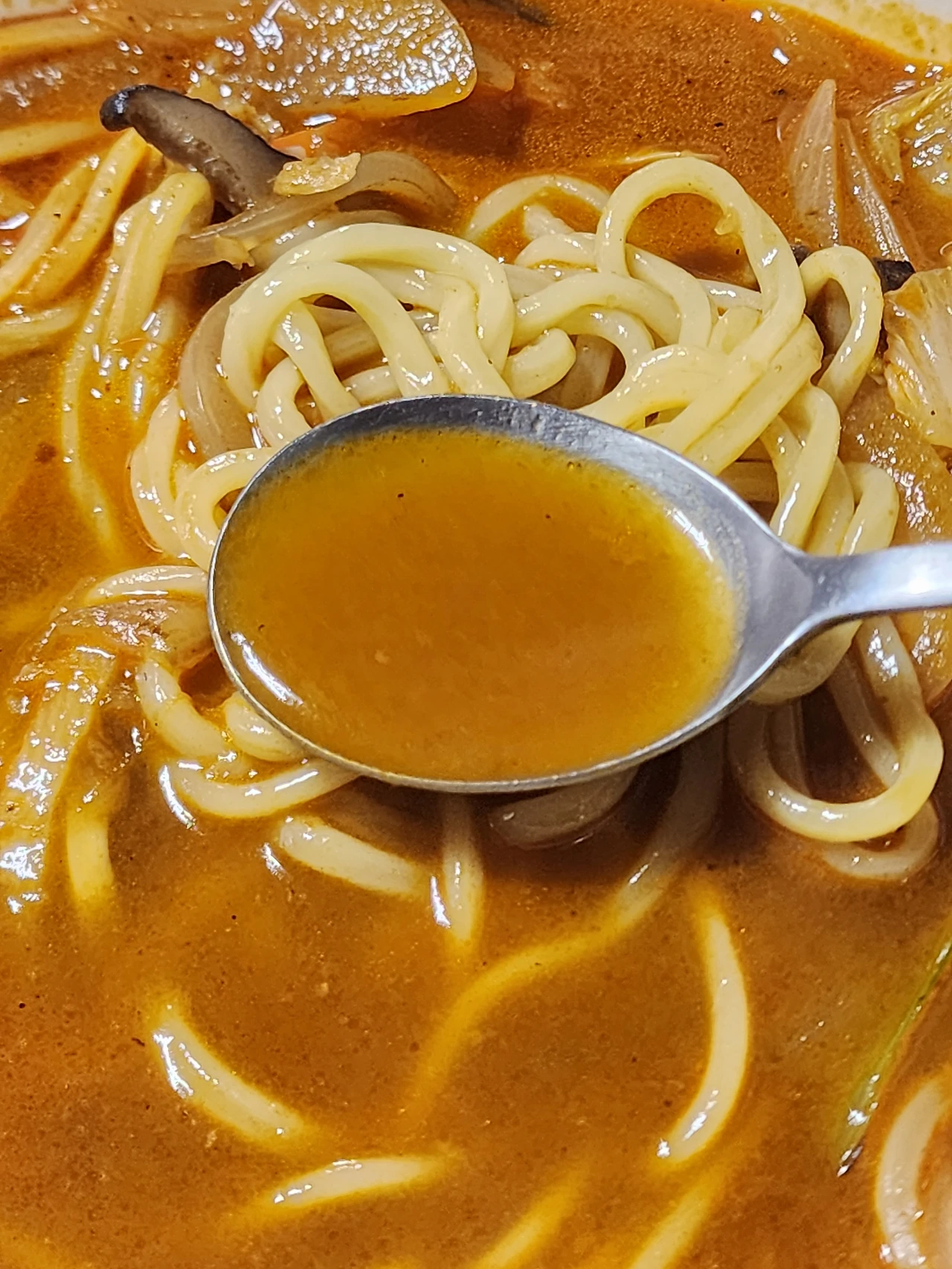 국물의 맛이 궁금하여 숟가락부터 들어 짬뽕에 넣는다. 탁한 주홍빛이 감도는 국물이다, 무거운 맛이 나려나.