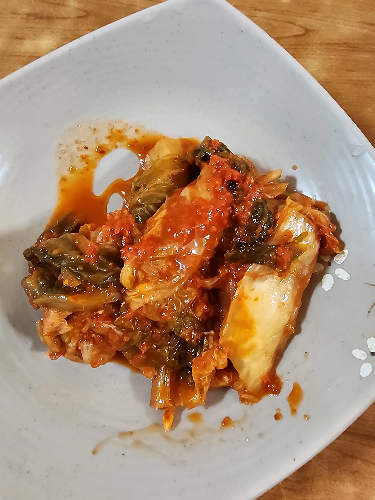 배추의 신선한 향기와 달달함, 그리고 백김치의 짭짤함이 치아 사이로 씹힌다. 백김치가 취향은 아니지만 꽤 맛있는 손맛이다. 그다음은 배추김치와 깍두기, 진하고 시원한 해산물의 풍미가 입안 가득하고 푹 익은 깍두기는 시원함은 물론이거니와 짭짤하면서 매콤하다. 영동지방의 전형적인 해산물김치의 시원함과 짭짤함을 담은 밑반찬이 국밥의 좋은 친구가 될 듯하다.