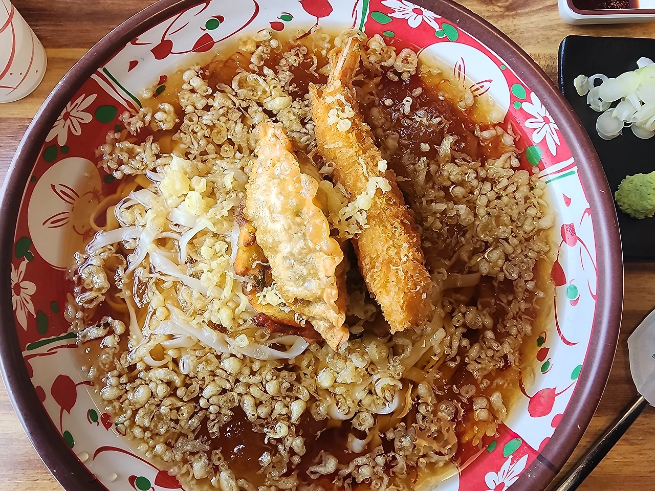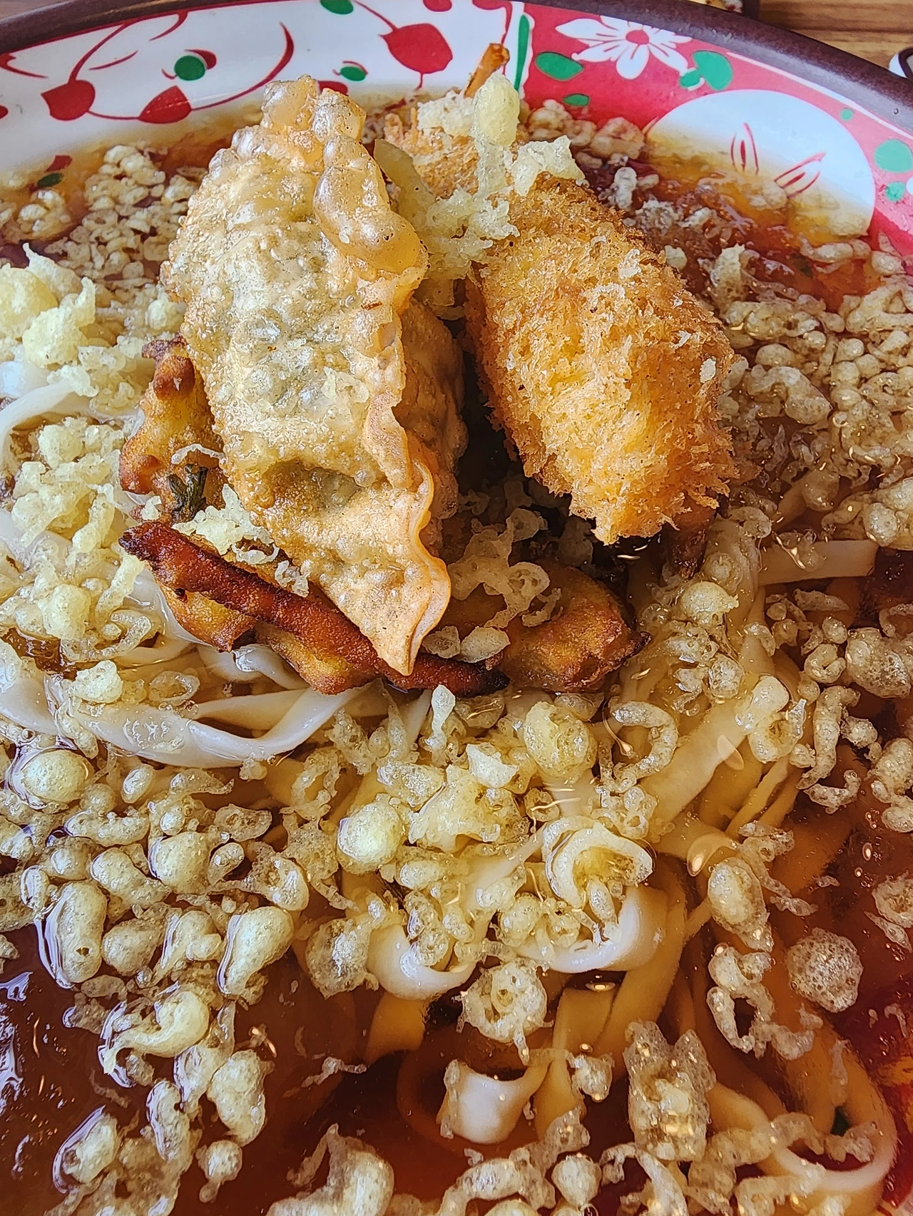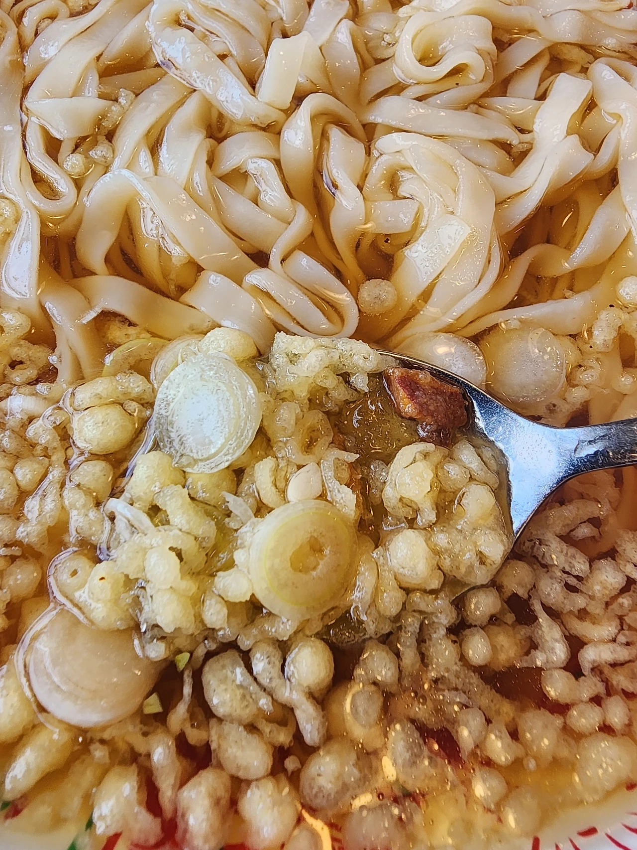 면발로 씹는 즐거움을 가진 김고로는 뒤이어 튀김파편이 가득한 육수를 여러 번 퍼서 먹는다. 바삭바삭하게 입안에서 터지는 파편들이 짭짤함과 즐거운 식감을 선사한다, 튀김파편들을 아끼지 않고 그릇에 가득 찰 만큼 많이 주신 덕분에 김고로는 시원하고 달콤한 육수에 바삭한 조각들을 원하는 만큼 퍼먹을 수 있었다. 육수는 살얼음이 곳곳에 생길 만큼 시원한 육수냉장고에서 나왔는지 살얼음덩이들을 씹을 때마다 온몸이 겨울을 느낀다.