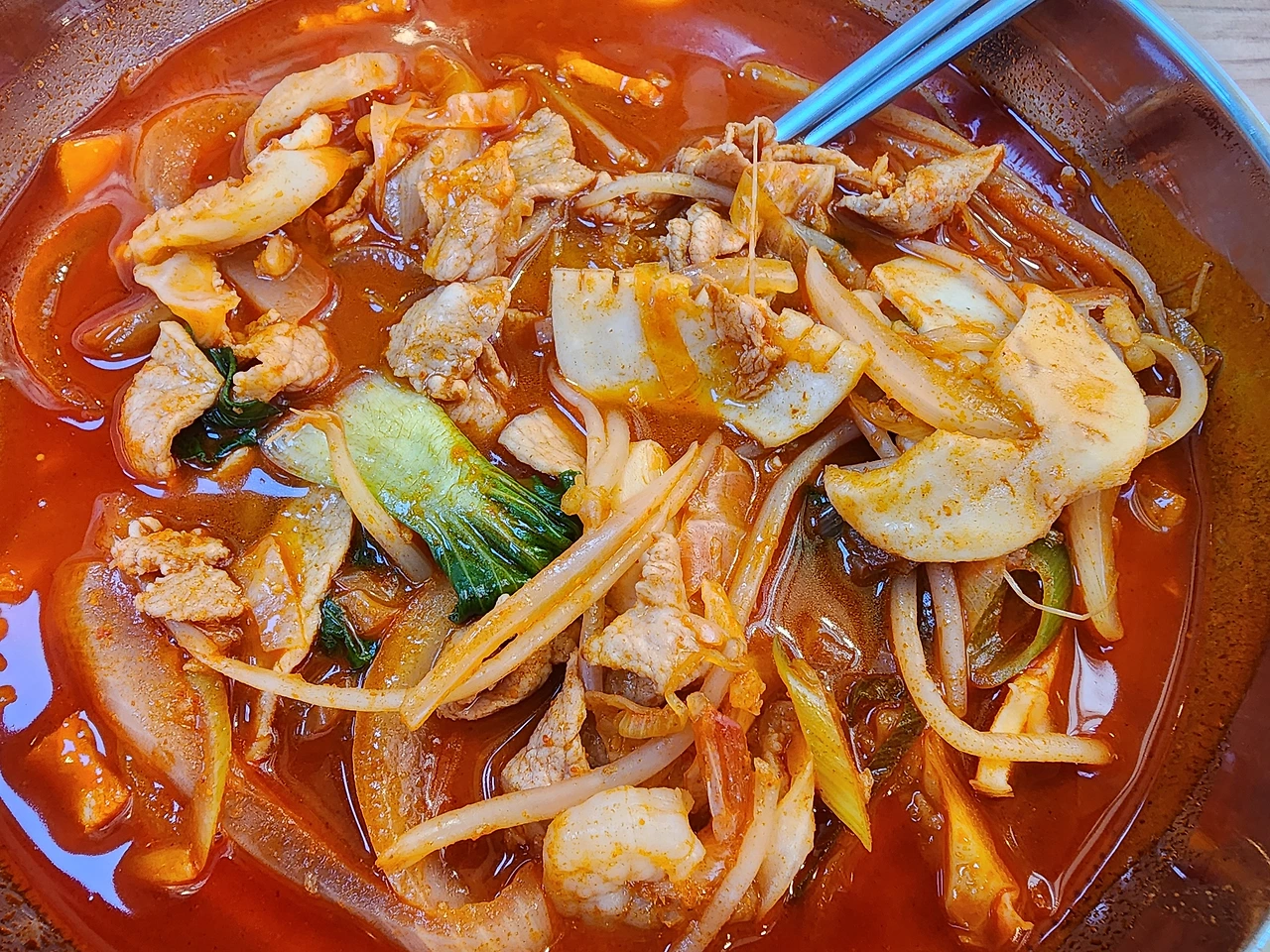 매콤하고 진한 고소함으로 입을 덥히다가 새콤달콤한 바삭 부드러운 고기를 다시 씹고, 다시 뜨끈한 육수로 돌아와서 식사를 마무리 짓는다. 짬뽕 국물이 맛있어서 빈 그릇으로 만들고 싶지만 그전에 먹었던 건더기의 양이 많아서 그럴 수가 없는 김고로, 설거지를 못함이 아쉽다.