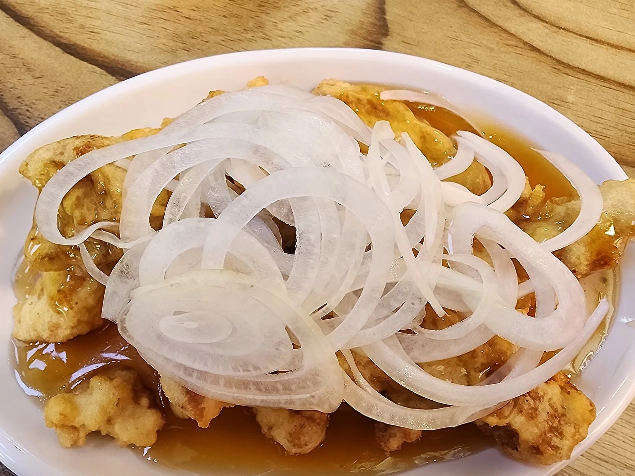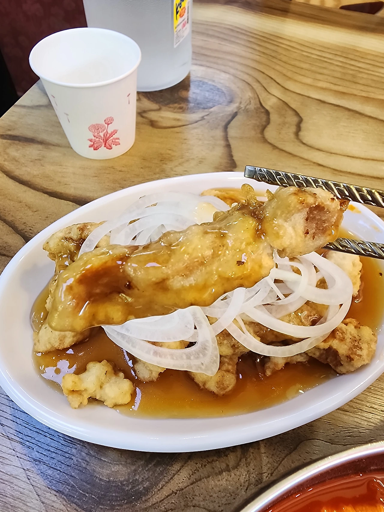 식탁에 나온 지 시간이 조금 지났지만 갓 튀겨진 것처럼 바삭거리는 탕수육은 튀김옷과 고기가 부드럽고 쫄깃하게 씹힌다. 무슨 조화를 부리셨는지 일반적인 탕수육보다 더 부드럽고 기름진 맛이다.