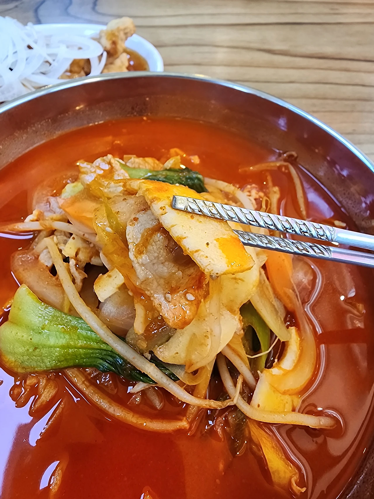 고기육수의 묵직하게 진한 맛과 칼칼한 고춧가루가 종수반점의 스트레이트 펀치 같은 그 끈적이는 육수를 생각하게 하지만 도화루의 육수는 조금 더 깔끔하고 끈적이지 않는 육수다.