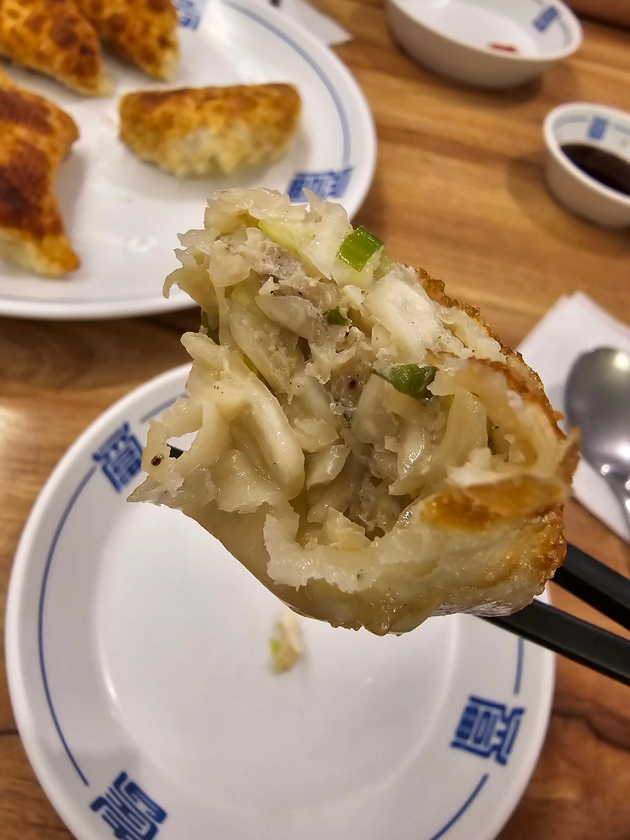 김고로가 알고 먹어왔던 만두피들보다 두 배 정도는 더 얇은 두께, 거기에 완벽에 가까울 정도의 바삭한 식감을 자랑하는 만두피가 앞니를 통해 어금니 사이에서 씹히고 깔끔하고 고소한 육즙과 다진 고기소, 아삭아삭하니 살아있는 양배추와 다진 파, 눈에 보이는 재료는 세 가지 정도 밖에는 안되지만 단출한 재료들이 서로 어울려서 식감과 풍미라는 두 마리 토끼를 한꺼번에 잡아낸다.
