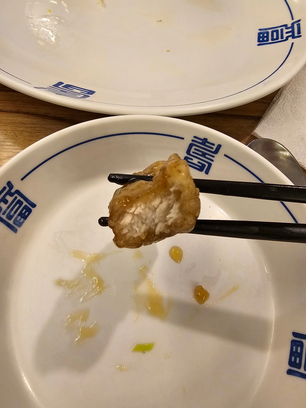 "만두피 진짜 얇다, 바삭하고 쫄깃해."