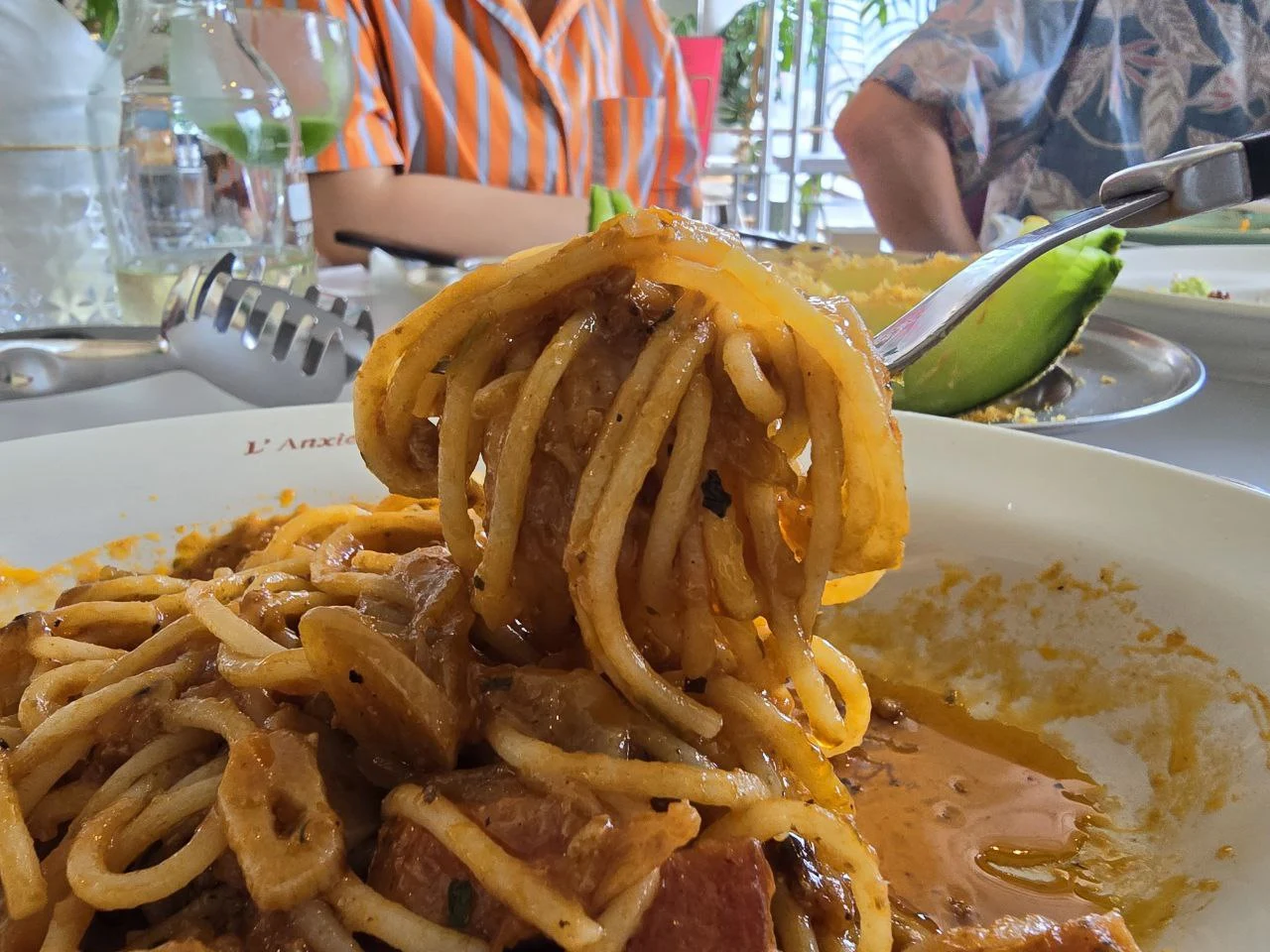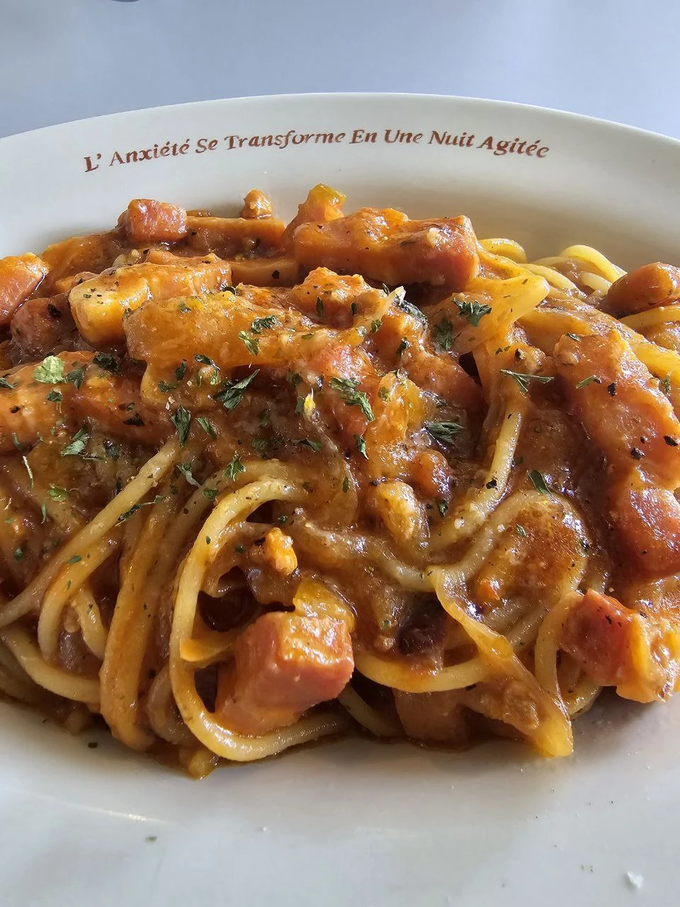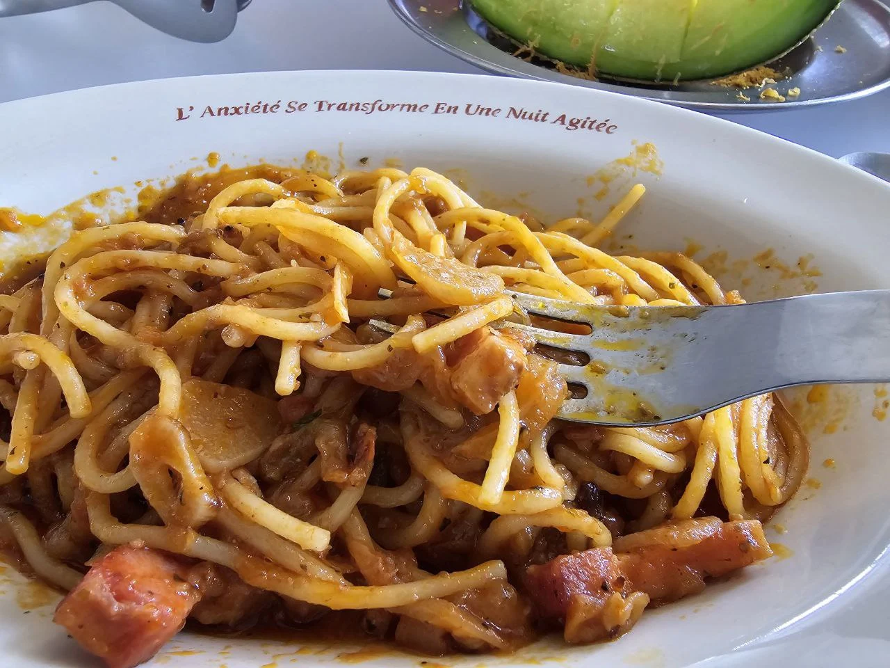 김고로의 치아 사이에서 단단하게 씹히는 베이컨 표면의 식감이 바삭하게까지 느껴져서 고기를 씹는 질감이 즐겁다. 거기에 놓치지 않고 토마토소스를 스파게티면에 잔뜩 비벼서 크게 한입 입안에 가득 넣는다. 탱글거리며 잘 삶아진 스파게티 가닥 사이로 진한 토마토의 맛이 은은하게 달콤한 양파와 어울려 새콤달콤하게 양볼 가득 묵직한 감칠맛과 소스에 녹아든 달콤하고 고소한 육즙이 혓바닥 위로 퍼져 나온다.