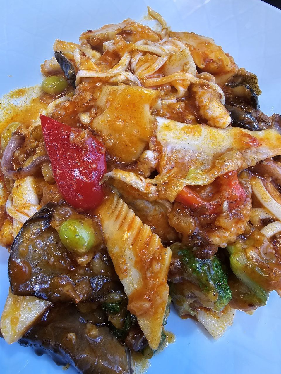지썅지썅에서 먹었던 요리류에서 지금도 사진을 보면서 침을 흘리게 하는 음식은 단연코 팔보채, 음식의 이름대로 여덟 가지의 귀한 재료만 들어간 음식이 아니라 여덟 가지 이상의 푸짐한 수의 재료들이 다진 마늘의 알싸함이 알맞게 튀는 향신료 기름들에 버무려져 어떤 재료를 씹어먹든 그 끝에 묘한 감칠맛과 부드럽게 깔끔한 마무리를 낸다. 일반적으로 생각할 수 있는 오징어, 새우, 청경채, 표고버섯, 죽순에 더해서 알배추, 파프리카, 낙지, 동태살, 브로콜리, 소라, 목이버섯, 은행 등이 더 들어가서 섞였으나 그 재료들의 합이 맛의 균형을 꽉 잡아준다. 고춧기름, 마늘, 참기름으로 이어지는 향신료들의 방정식에 어우러져 완벽한 값을 내는 음식이 지썅지썅의 팔보채다.