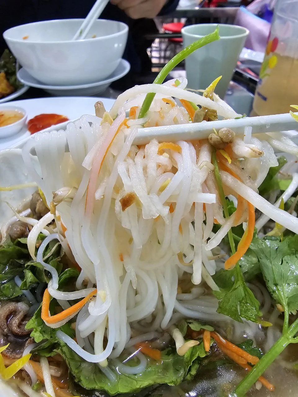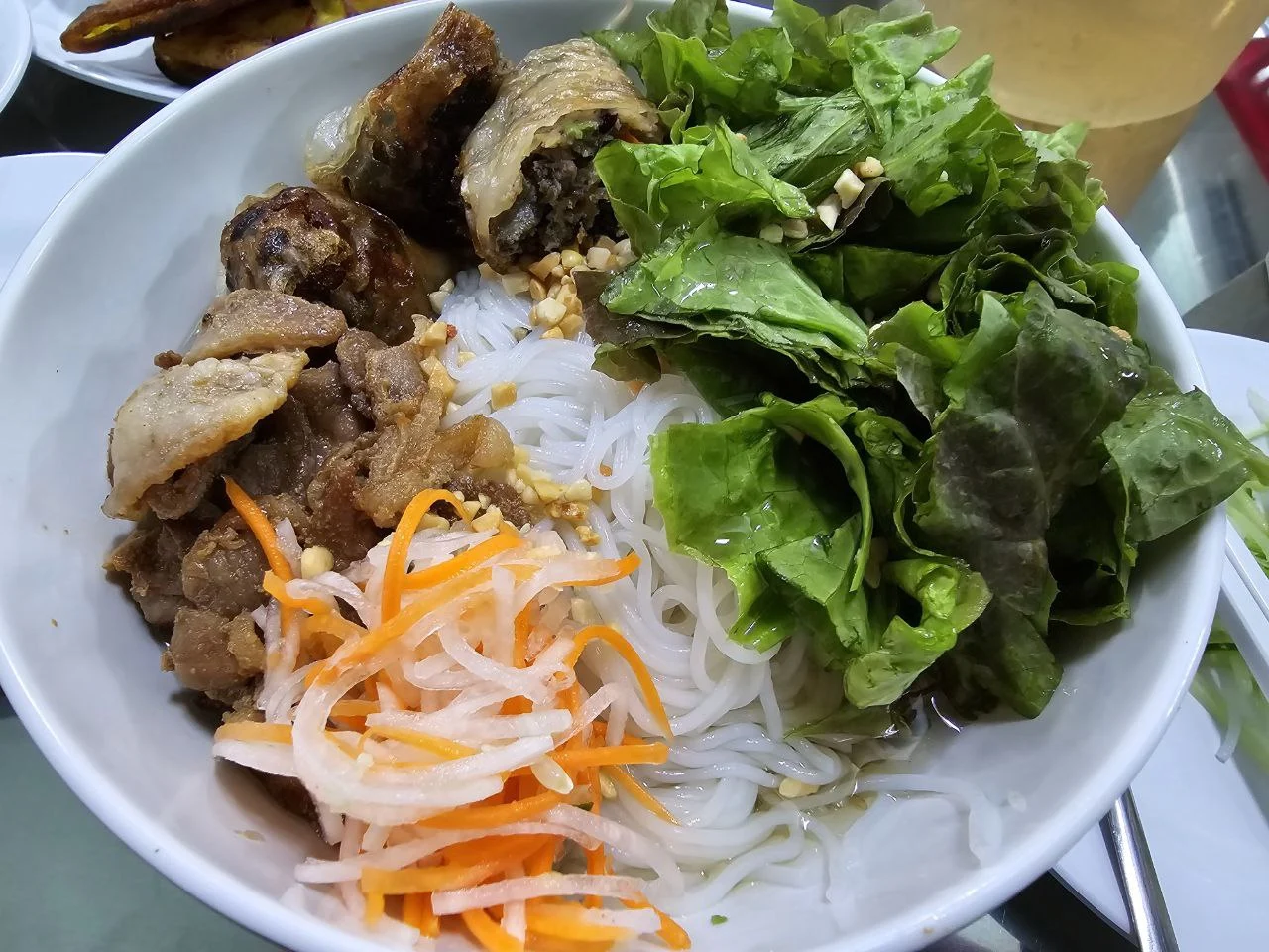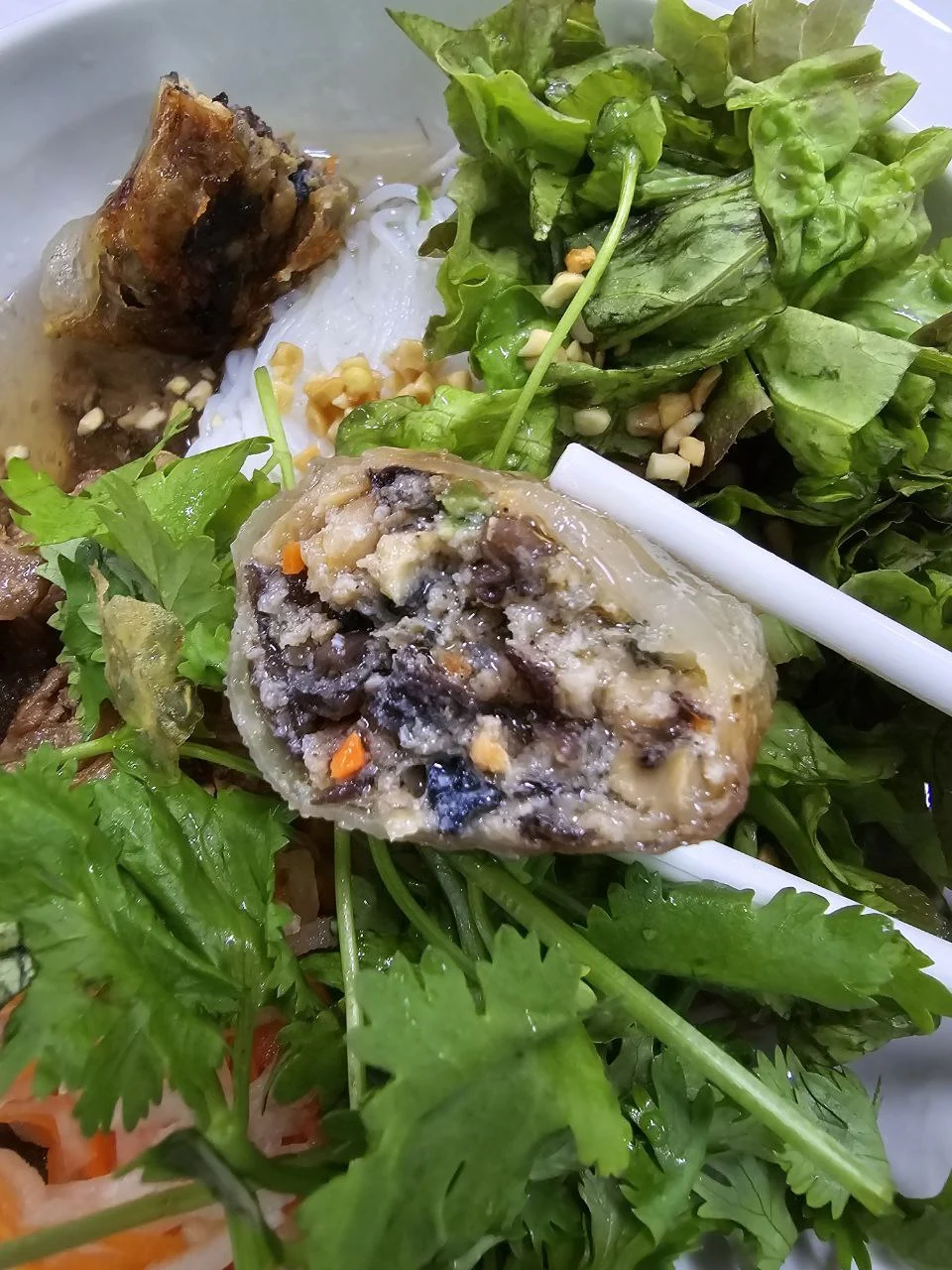노릇노릇하게 튀겨진 라이스페이퍼 안에 다진 당면, 당근과 함께 고기처럼 들어간 우렁이는 반쎄오와 마찬가지로 식감과 맛을 위해 계획적으로 설계된 식감의 집합체였다. 우렁이의 튕기는 식감과 말랑거리는 당면, 그 사이에서 '나야 당그은'하면서 고개를 드는 딱딱한 황색 채소의 씹히는 맛이 함께 나온 달콤하면서도 베트남 고추의 매운맛이 죽지 않은 달콤한 소스를 묻히고 입안을 폭격한다. 바삭 트리오 삼중주에 이은 쫄깃 쿼텟 사중주 그리고 못 먹어서 아쉬운 쇠고기 쌀국수의 빈자리를 대신 채운 분팃느엉이 준비한 오케스트라가 준비되었다.