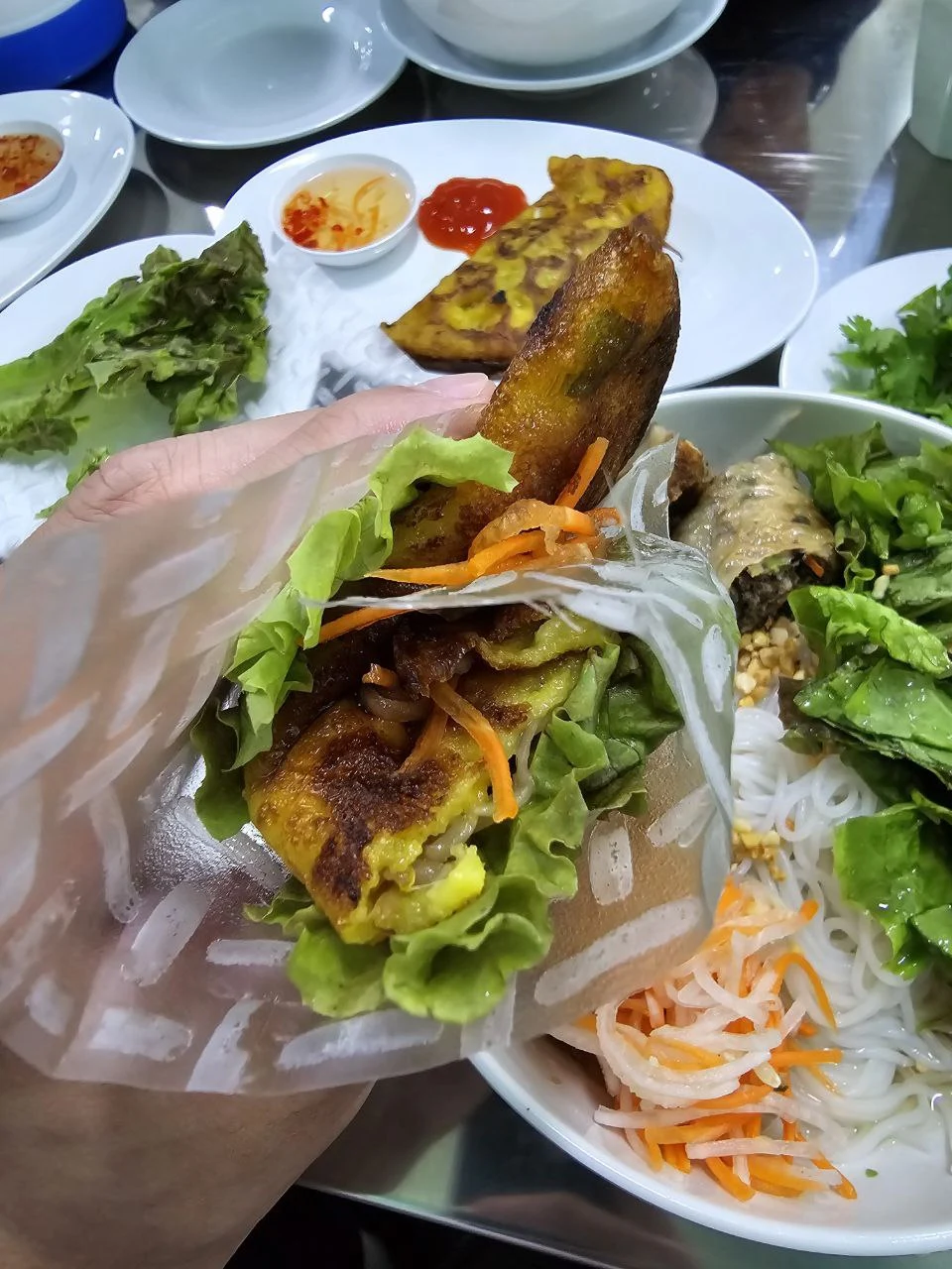 호주에서도 반쎄오를 먹어봤었지만 커다란 오믈렛처럼 나오기에, 조금 더 작은 크기에 라이스페이퍼와 나온 반쎄오를 본 김고로는 사장님께 가르침을 구해본다.