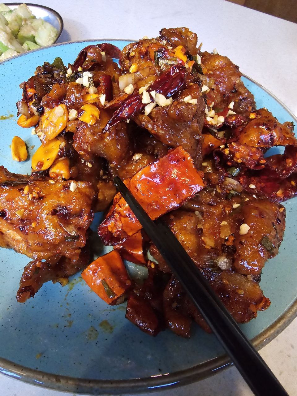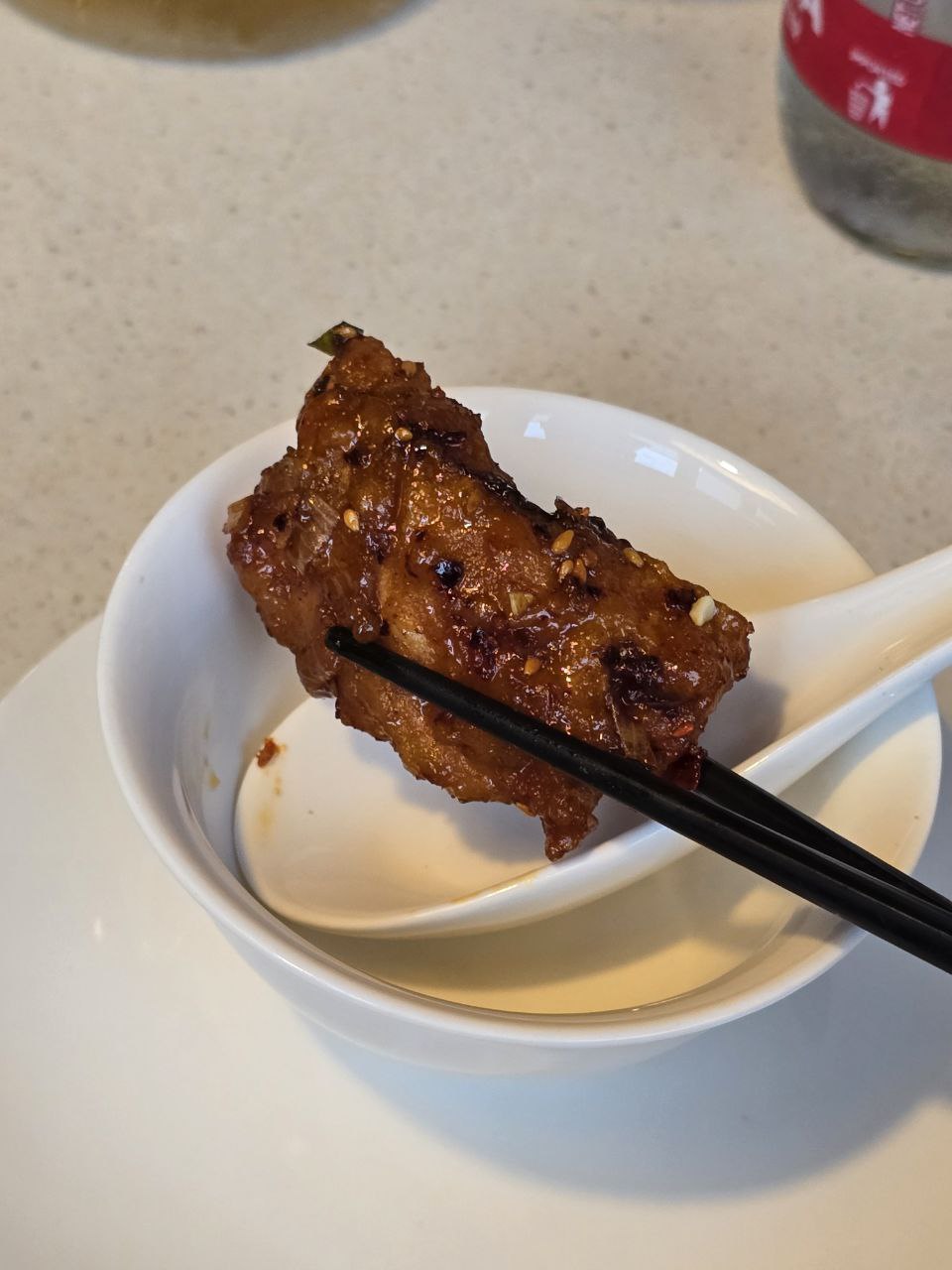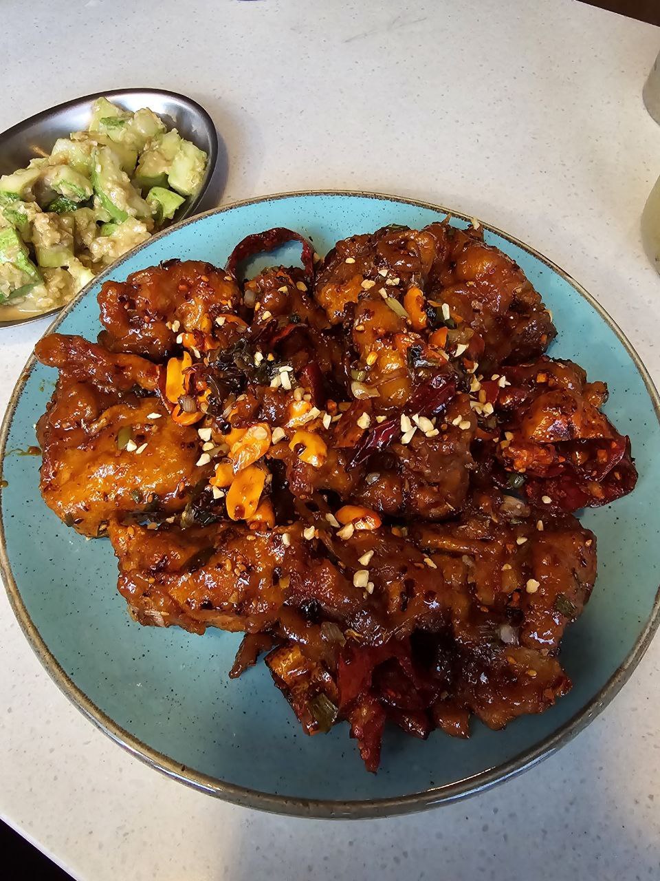 자그마한(우리 입에 비하면) 중화식 닭튀김 요리가 입안으로 들어와서 씹힌다, 코끝까지 밀려들어오는 향신료와 매콤함, 달콤함은 물론 쫄깃하고 부드러운 닭살과 단단한 듯 바삭한 튀김옷이 어울려 대비되는 식감으로 입을 즐겁게 한다.