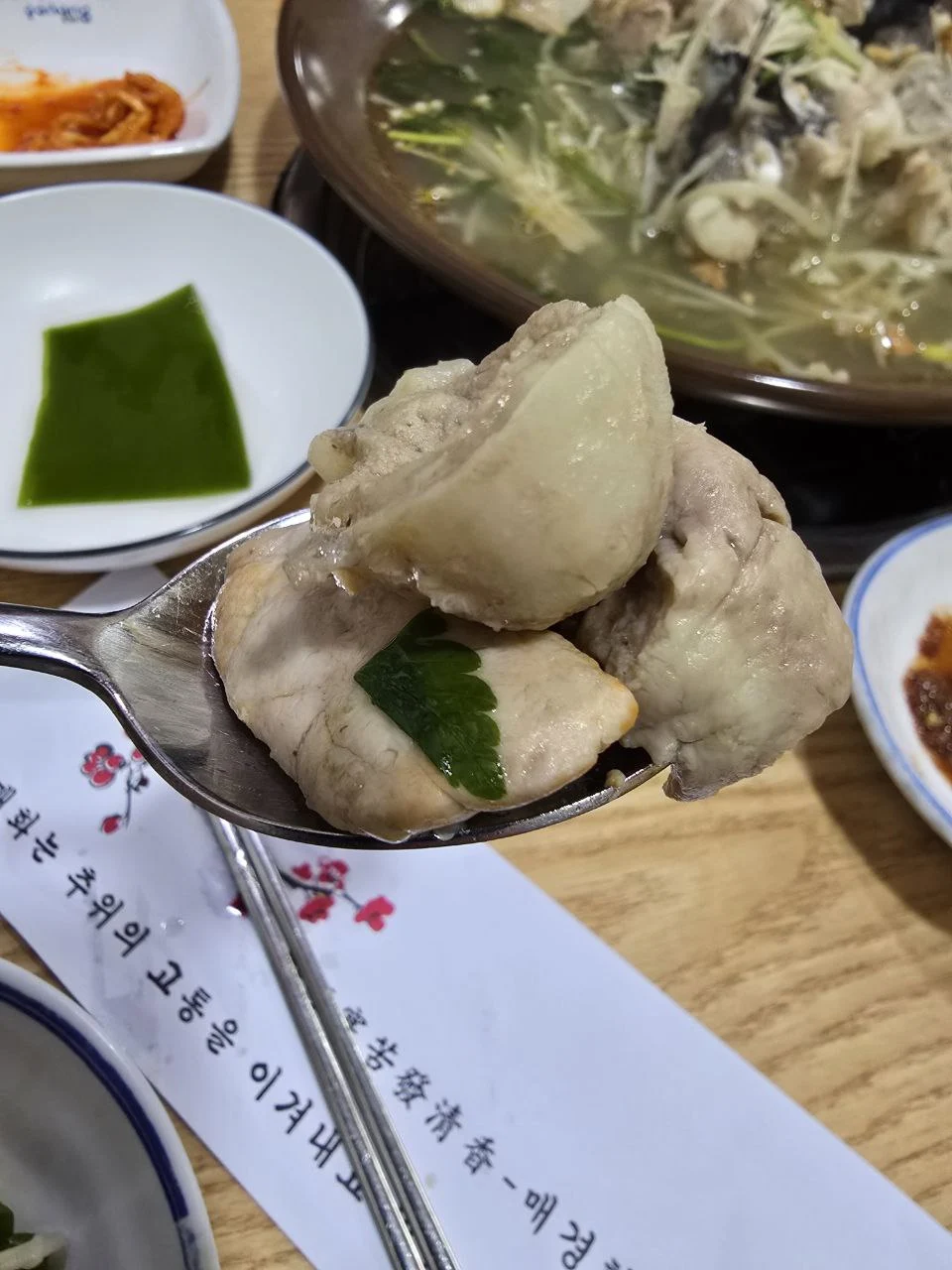 달콤하면서 진한 생선살의 시원함, 깔끔함이 육수에 녹아들어 있다. 함께 곁들여진 미나리와 콩나물 덕분에 시원함도 놓치지 않고 선사한다. 아귀수육을 주문하면 아귀지리는 굳이 시키지 않아도 괜찮지 않을까? 애주가들은 이걸로도 술을 잔뜩 먹을 수 있지 않을까, 생각하는 김고로였다.