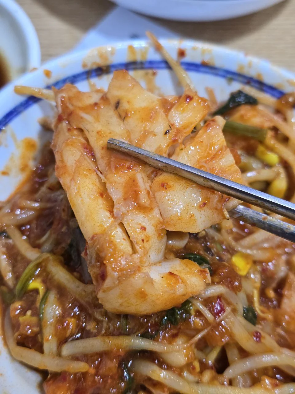 토실토실한 대구의 살토막을 젓가락으로 살며시 발라내어 입안으로 콩나물과 함께 가져간다.