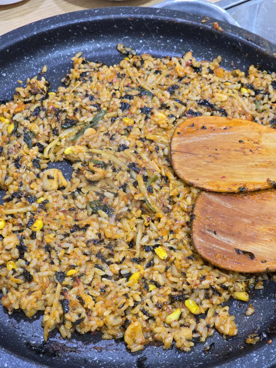 고기를 구워 먹기 좋은 불판에 거뭇거뭇하게 그을리듯 눌려서 볶아진 해물찜 볶음밥이 그들의 식사를 마무리 짓기 위해 올라왔다. 짭짤하고 매콤한 양념장의 맛을 그대로 간직한 볶음밥을 김고로와 박군, 이쁜 그녀는 사이좋게 나눠 먹었다. 양념장이 촉촉하게 위를 덮고, 바닥에서 눌어붙은 밥은 살짝 단단한 식감으로 밥의 구수한 풍미를 더했다. 한국에서 식사 후, 볶음밥으로 만들어 먹기 어려운 전골이나 찜은 찾기 어렵다는 점은, 한식의 장점 중 하나이다.