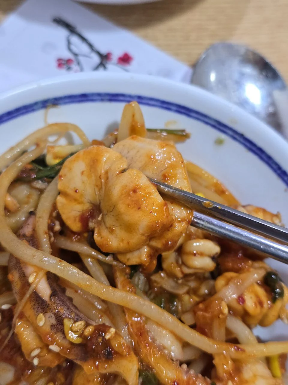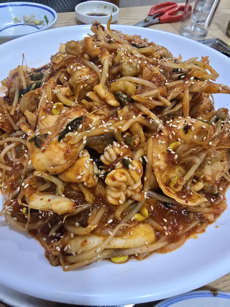주문을 하고서는 서로가 어떻게 살고 있는지와 어떤 일들이 일어나고 있는지 근황들을 얘기하고 있으니 매콤하고 진한 해물의 냄새와 함께 대구뽈찜이 식탁 위로 등장한다. 대구만 있는 것이 아니라 곤이, 오징어, 새우, 조갯살과 콩나물 등 다채로운 재료들로 대구로 다 채워지지 않을지도 모르는 속을 든든하게 채워주기 위한 바다 친구들이 함께 보인다.