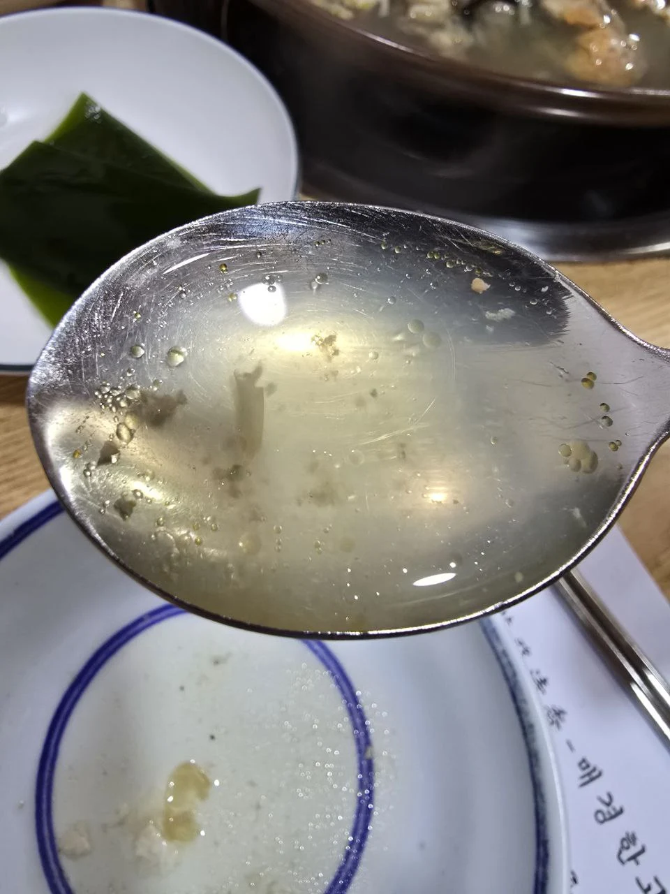 아구수육을 시켰는데 지리와도 같은 맑은 아구육수가 넘실거린다