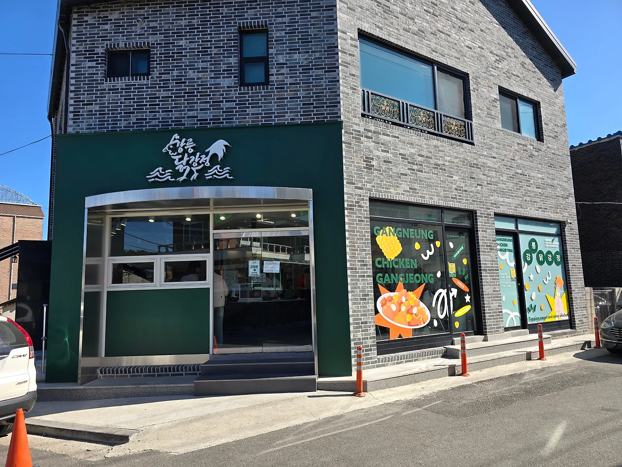 어느 방송사 유명 예능 프로에 나와 유명해진 초당의 어느 두부전골 집 앞, 짙은 초록색 간판과 흰 글씨로 상호명과 닭을 그려 넣었다. 외관은 통유리창이라 내부의 모습을 투명하게 볼 수 있는데, 두부전골을 먹고 나온 사람들이 곧잘 들리는 모습이다.