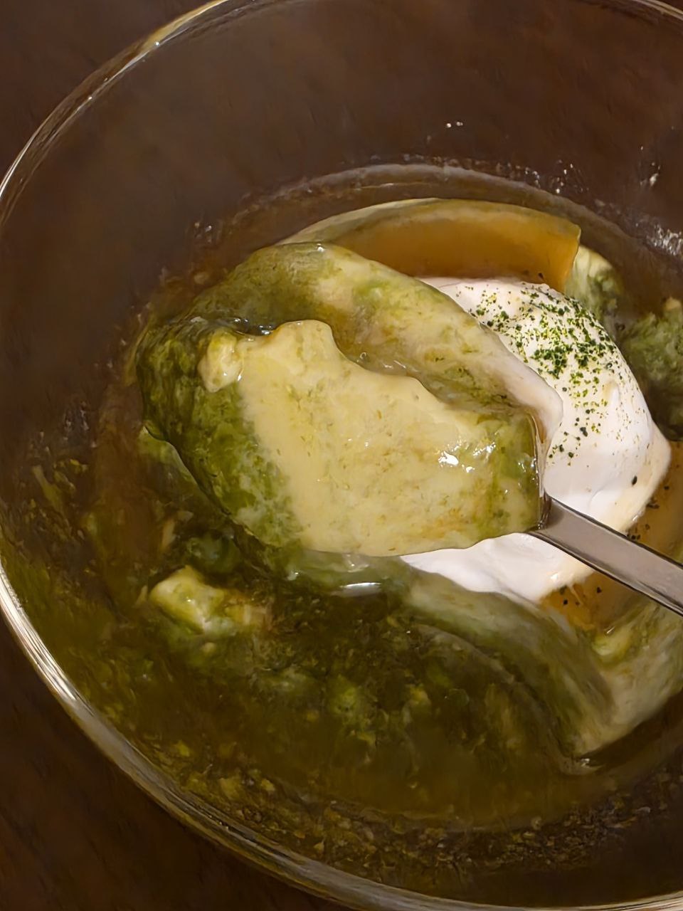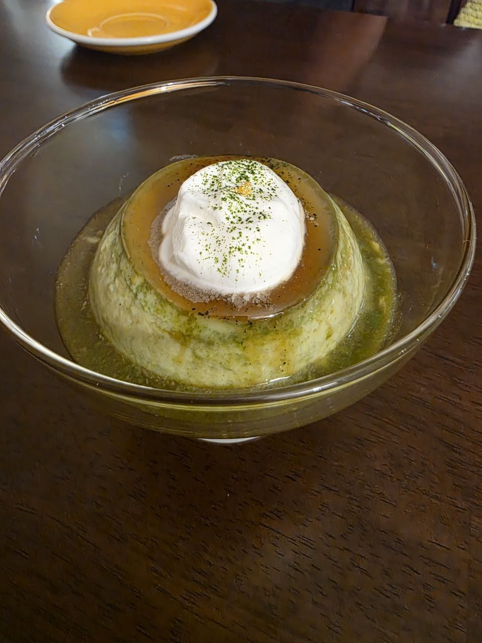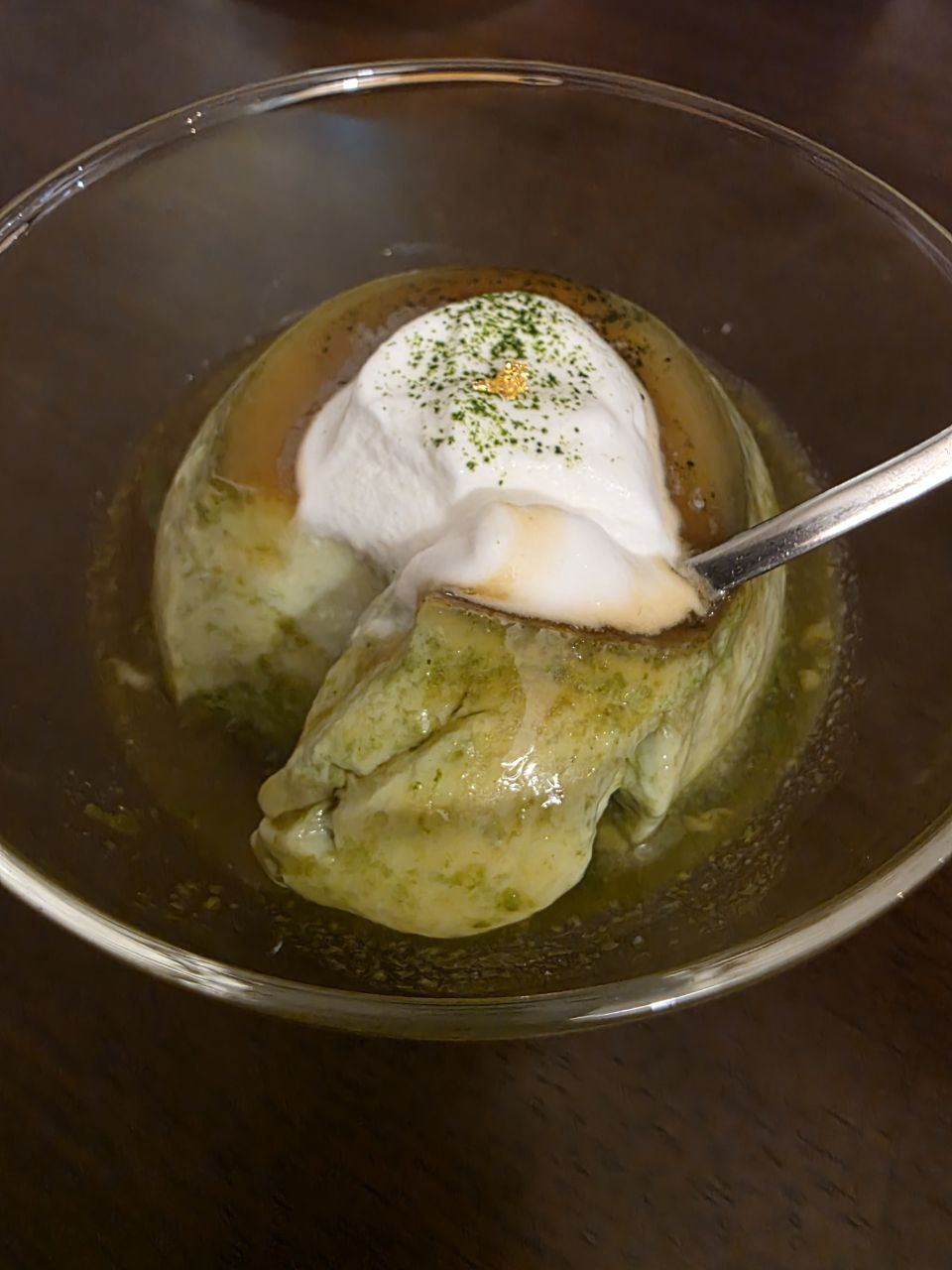 "말차푸딩은 이전에 먹어본 적이 없어서 여기에서 처음 먹는데, 앞으로도 계속 먹겠어."